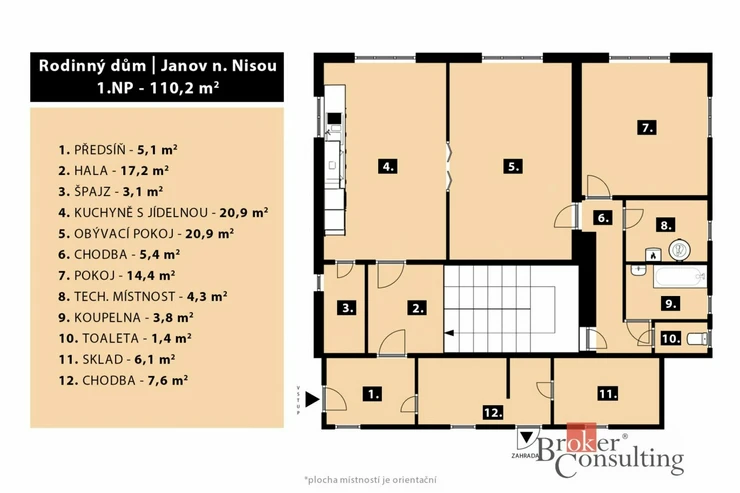 Nemovitost má celkovou plochu včetně pozemku 604 m², dům má zastavěnou plochu 138 m² a je určen ke kompletní rekonstrukci.