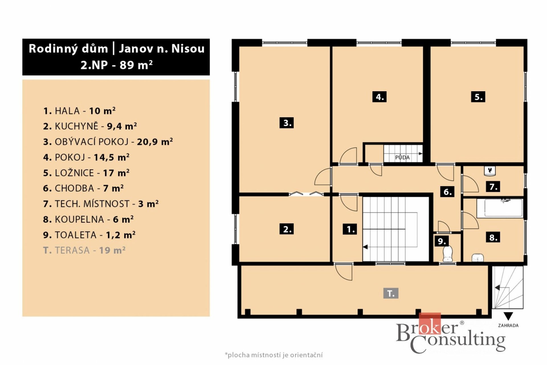 Ve 2. nadzemním podlaží je další byt o dispozici 3+1 a i zde je technická místnost.