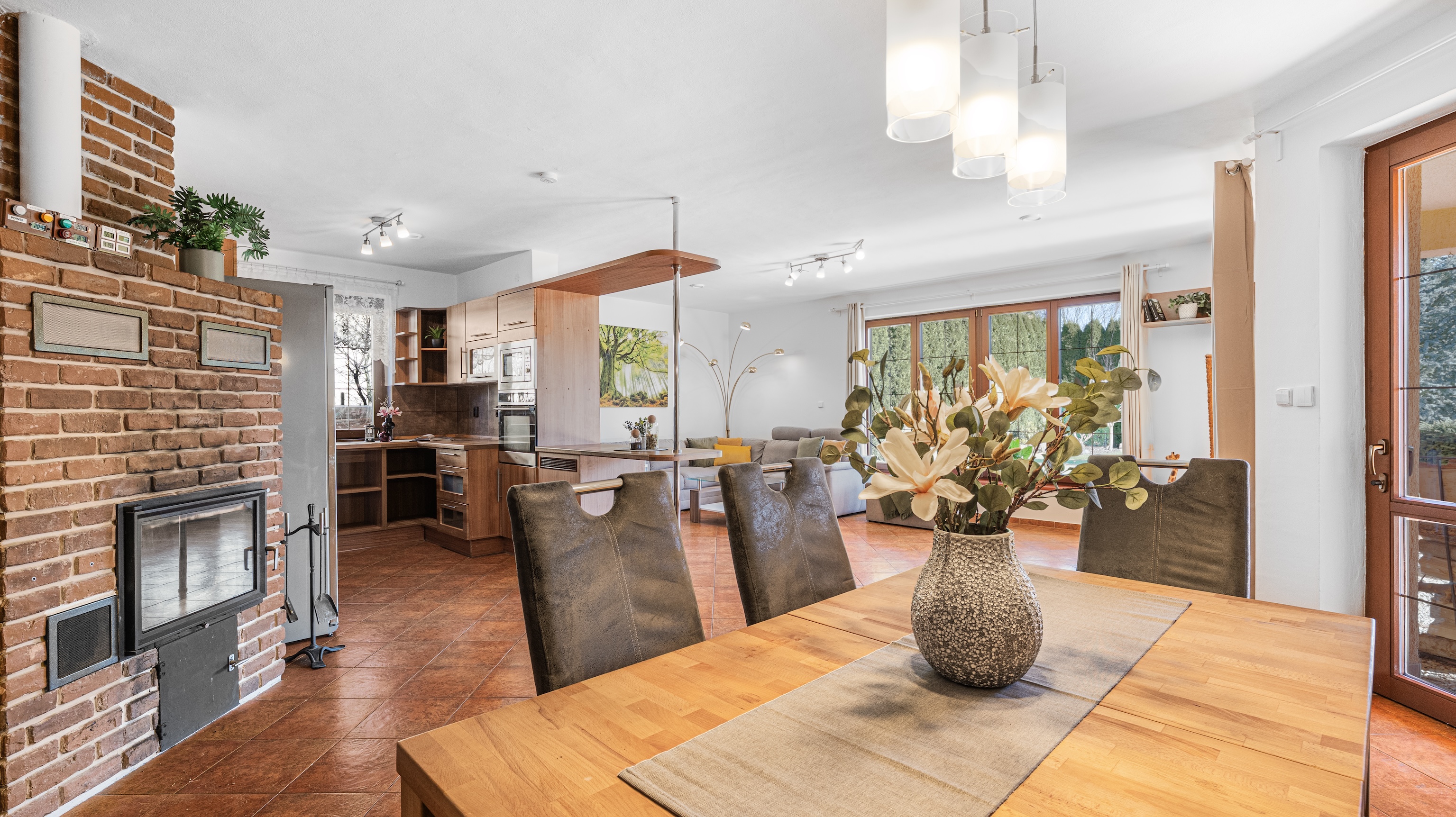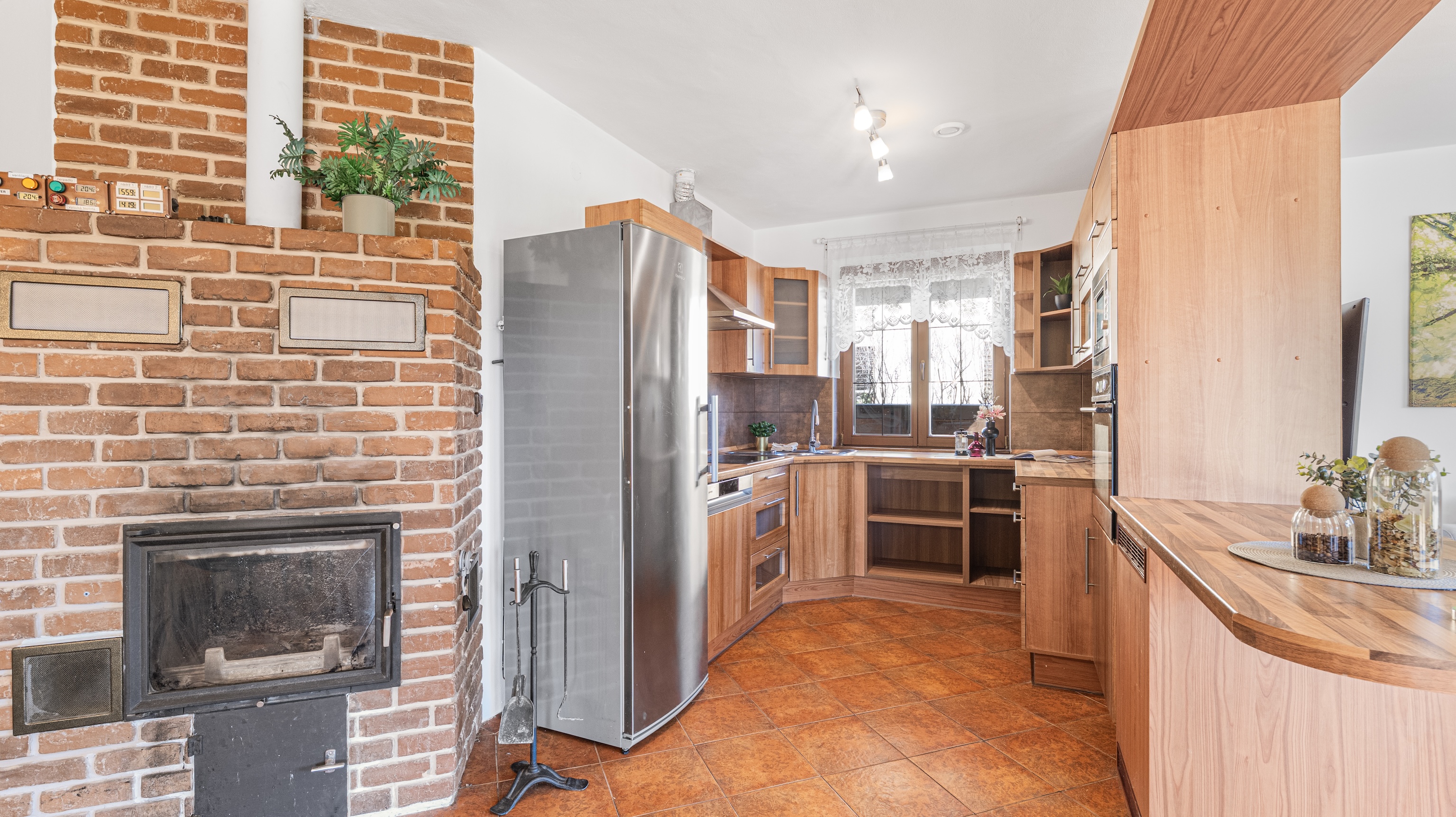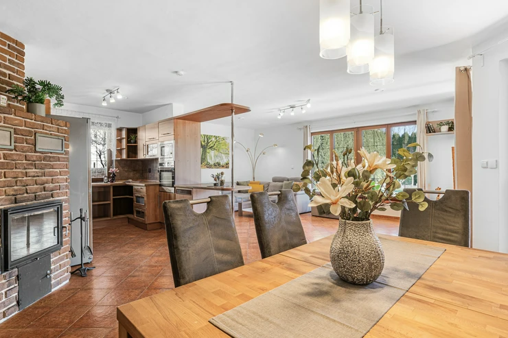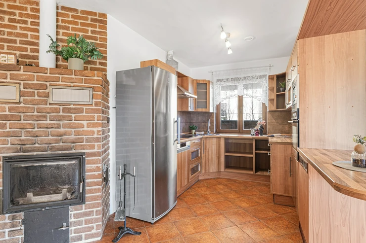 Layout: 4+kk with a spacious living room and fireplace.