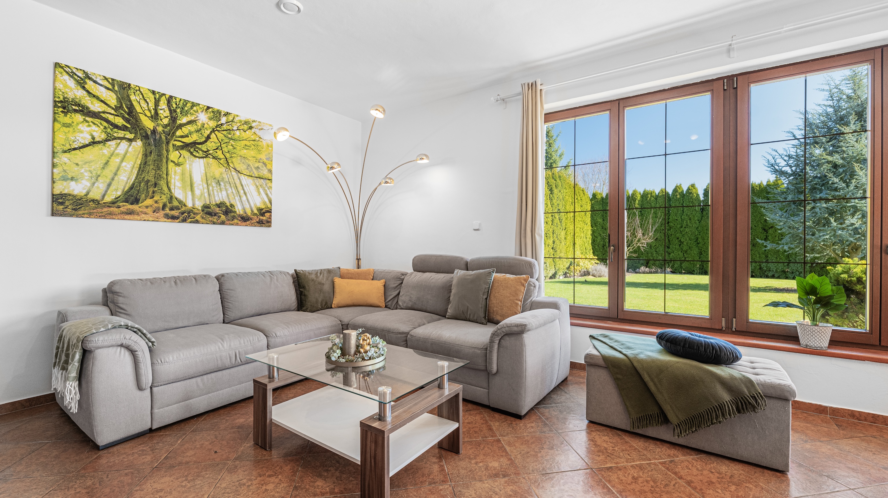 Automatic Maintenance: Irrigation system and robotic mower keep the lawn in perfect condition.