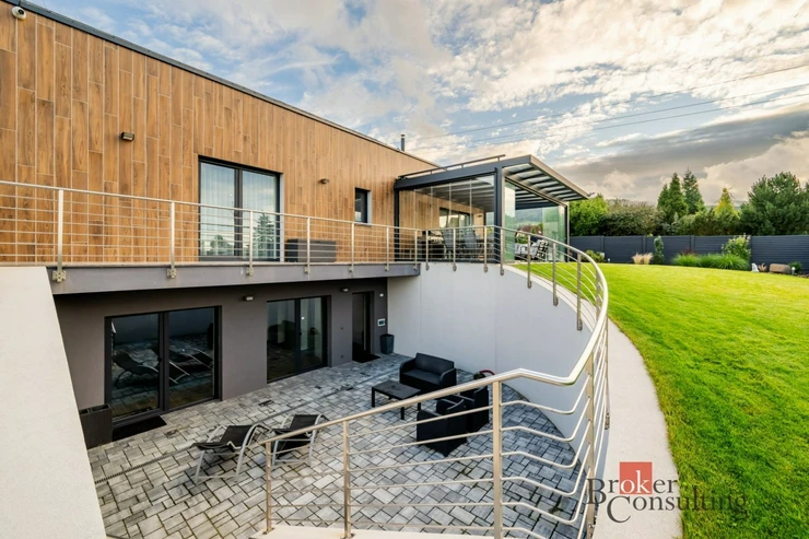 Jedinečná nabídka luxusního rodinného domu v žádané lokalitě Minkovic u Liberce, jenž byl zkolaudovaný teprve na konci roku 2023 s energetickou náročností B. Jen zde najdete ideální kombinaci životního prostoru v dispozici 6+KK a klidu na každodenní relaxaci na ploše přes 333m2, k čemuž Vám poslouží 25m2 prosklená zimní zahrada s bioklimatickým systémem s možností plného otevření a v podzemním podlaží 71m2 vnitřní bazén a sauna, společně s privátní odpočinkovou venkovní zónou. To vše s důrazem na Vaše bezpečí a pohodlí s garáží pro 2 automobily na ploše přes 46m2, elektrickými a přes aplikaci ovládanými venkovními roletami a zabezpečovacím systémem. Ideální velikost pozemku o velikosti 787m Vám zaručí dostatek prostoru celé Vaší rodině nebo na setkávání s přáteli, kde samozřejmě nechybí integrované zavlažování. A s příchodem soumraku, kdy dům rozzáří noční osvětlení, si to tu teprve zamilujete. Tak neváhejte a přijeďte se osobně přesvědčit, že tento dům byl stvořen přímo pro Vás.