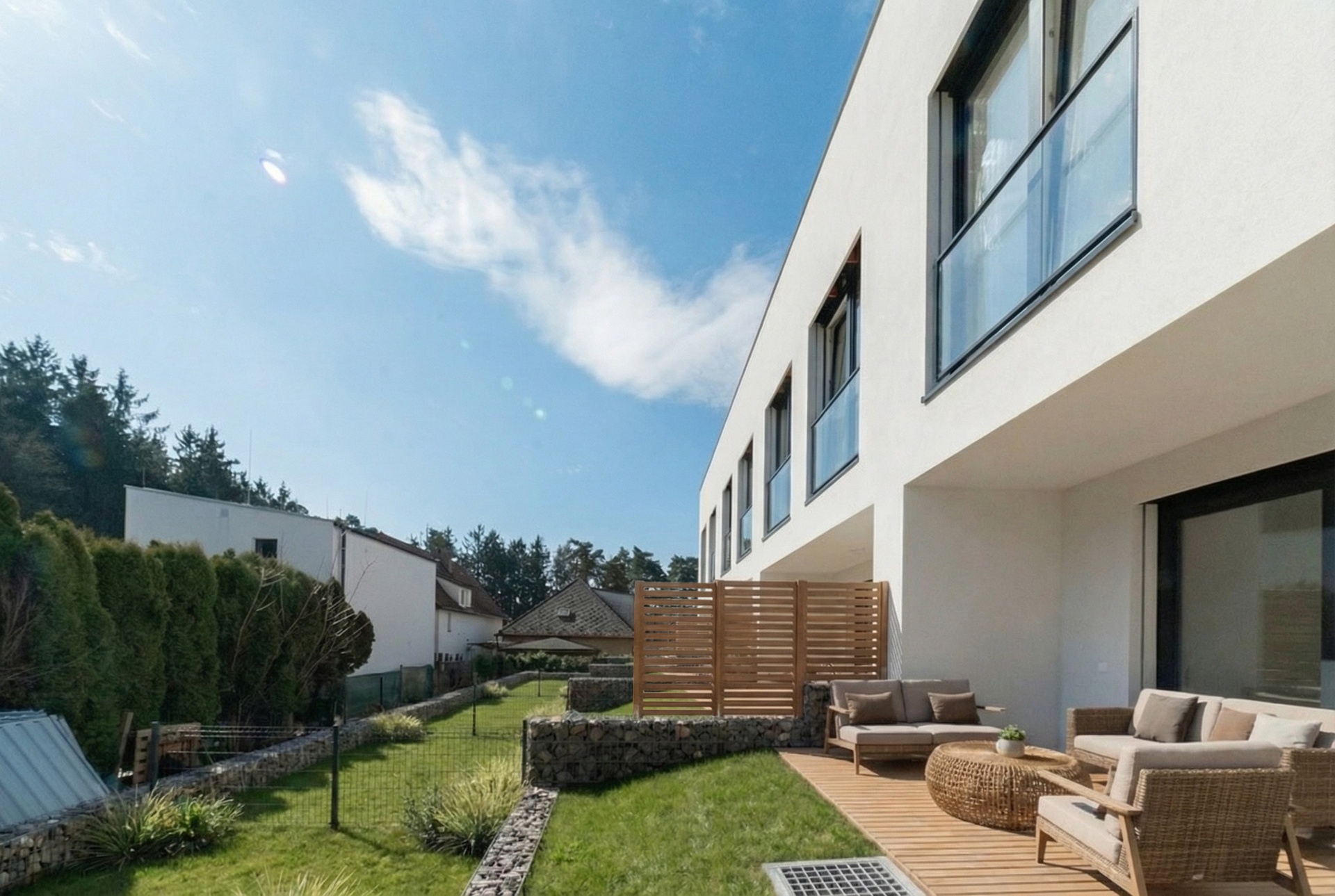 - prostorný obývací pokoj s přímým vstupem na zahradu,