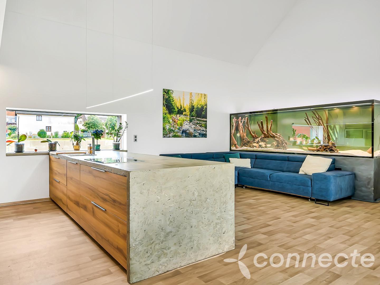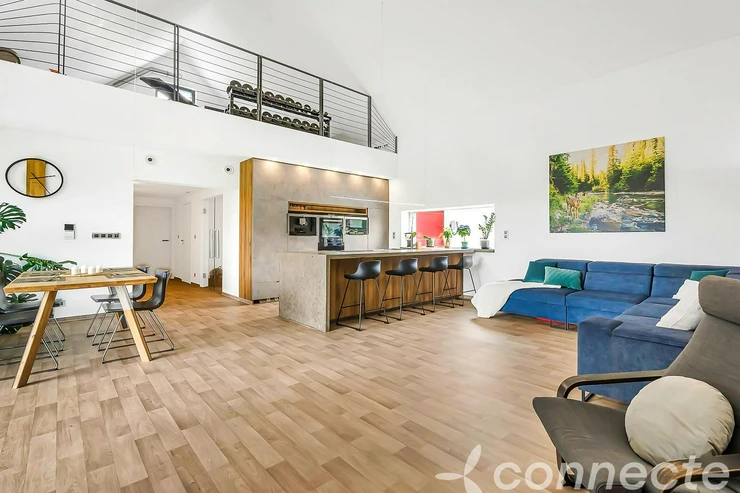 Living room with kitchen (46.5 m2) and direct access to the terrace