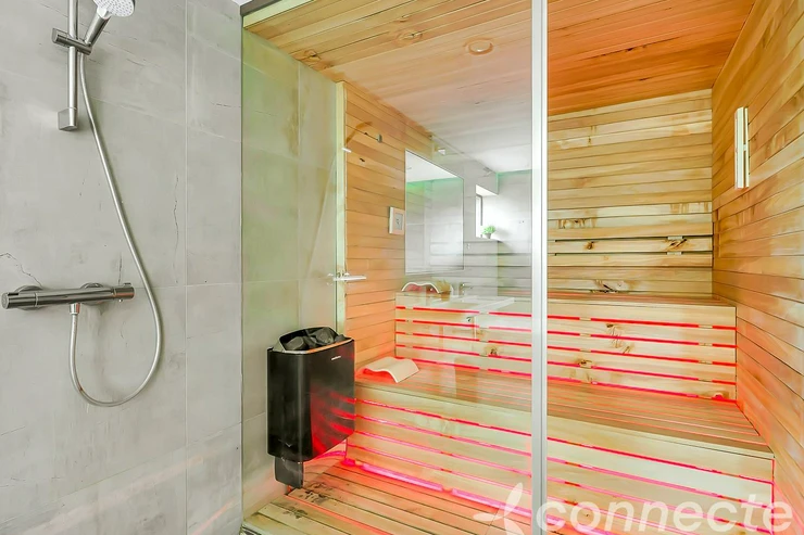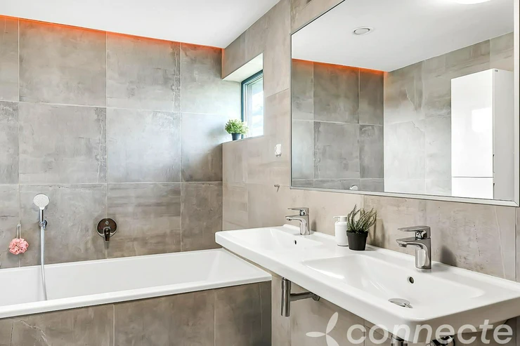 Bathroom with both a bathtub and a walk-in shower, 2× WC