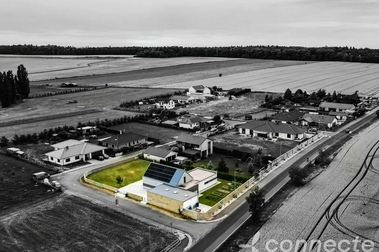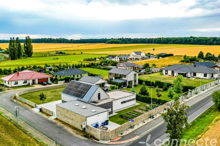 Connected to mains water and sewerage, drilled well, electricity 230/400 V, gas at the boundary of the plot