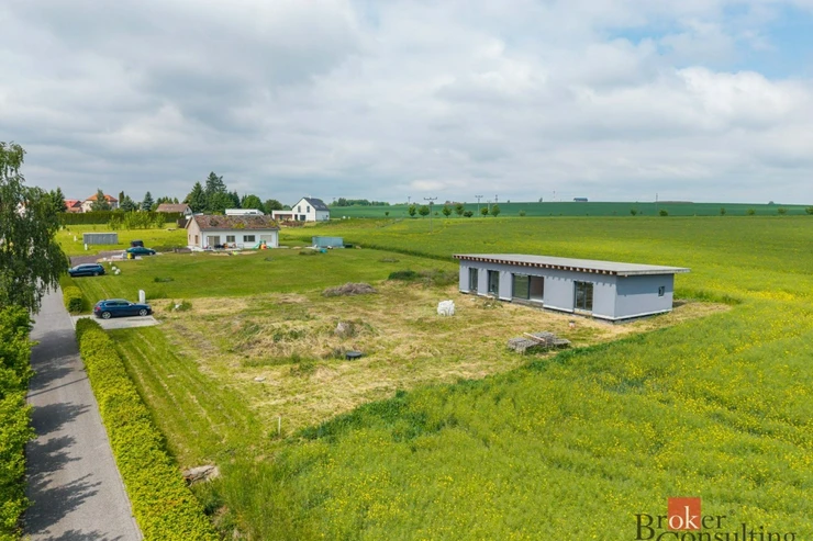 K domu patří opravdu velkorysý a rovinatý pozemek o výměře 1 483 m², který nabízí nejen výhled do zeleně, ale také spoustu možností – bazén, terasa, garáž, zahradní domek, apod.