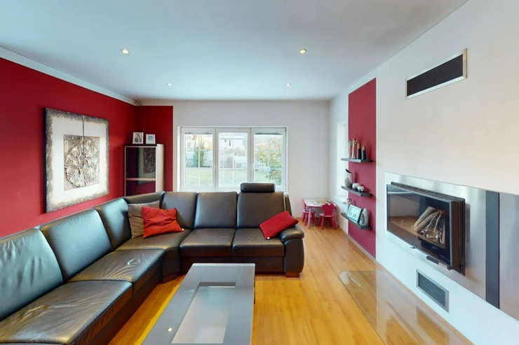 We offer for sale a new family house on a plot of 1,557 m2, total built-up area 212 m2 (useful area 424 m2) + garage which is part of the first floor of the house. Everything in the house is electric.