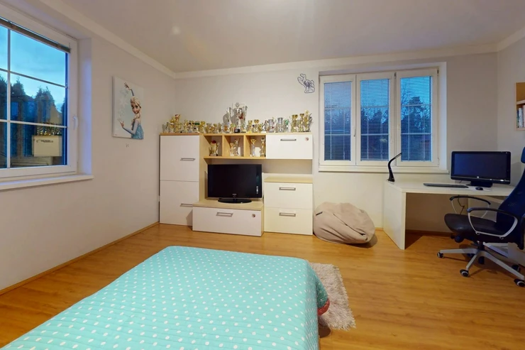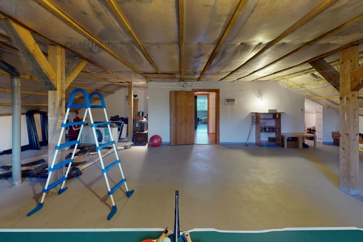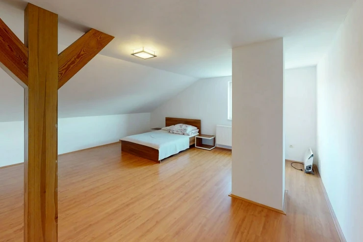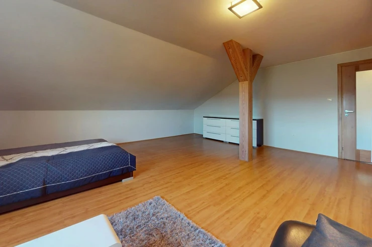 2nd floor: 2 bedrooms and the advantage of the house is a huge attic, which can serve as a multifunctional part of the house (sports, room for drying clothes, creative/work space, or can serve as a new opportunity to realize your desires and goals), to which water is connected. An awning costing 200,000 CZK will delight those who love being outdoors all year round.