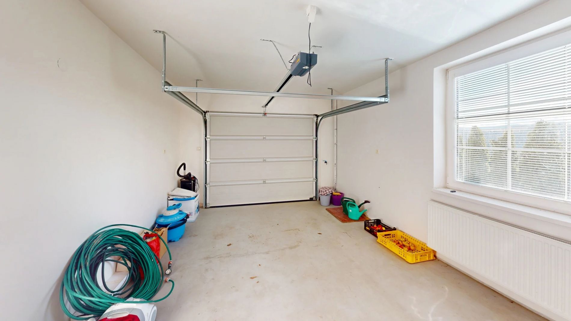 1st floor: entrance hall, garage, living room connected to the kitchen, technical room, bathroom with bath and shower, separate toilet, 2 bedrooms (one with its own toilet).