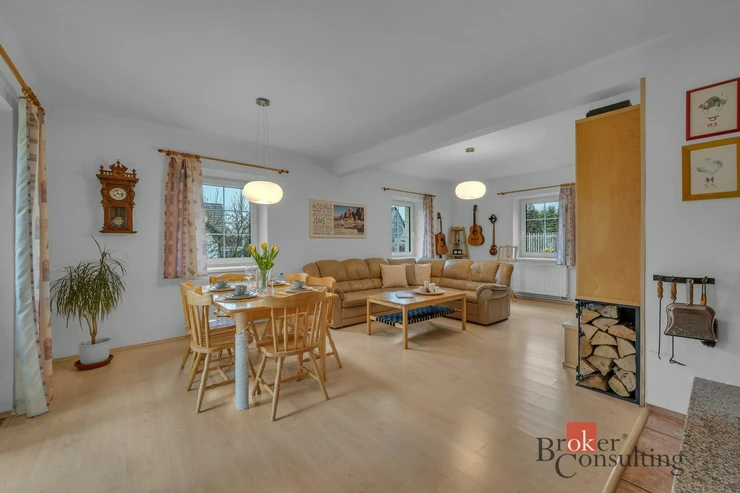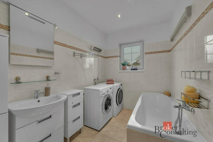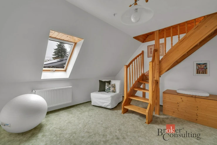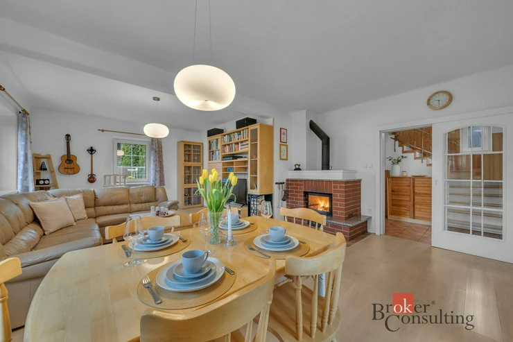 Dispozičně je dům řešen jako 5+kk a obyvatelný půdní prostor. Je ideální pro rodinu s dětmi a obrovskou výhodou jsou jeho nízké provozní náklady (3.700 Kč měsíčně na dvě osoby). Nemovitost nabízí dostatečný klid s dobrou dopravní dostupností a v blízkosti přírody.