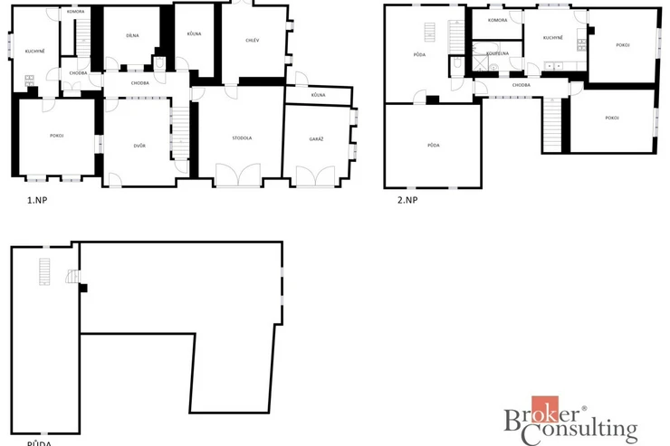 Stavení je rozsáhlé a dispozičně atypické, proto výměry, které níže uvádíme jsou orientační.