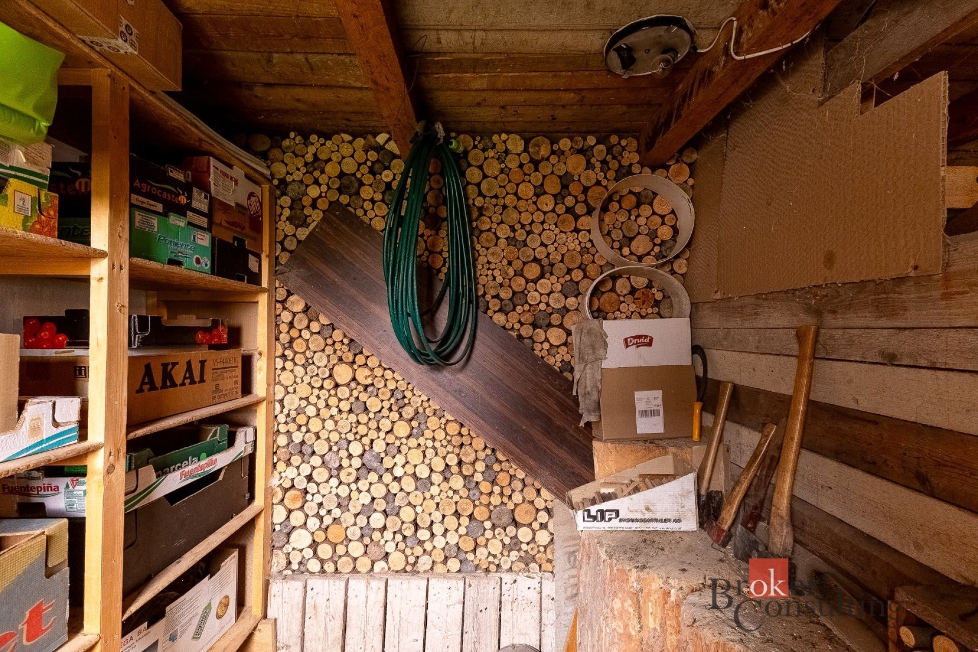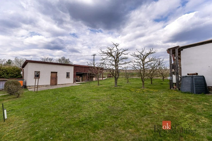 Na pozemku se nachází dílna se skladem, prostor pro drobné domácí zvířectvo, zahrada a další zděná stavba sloužící jako sklad (např. na zahradní techniku nebo dřevo).