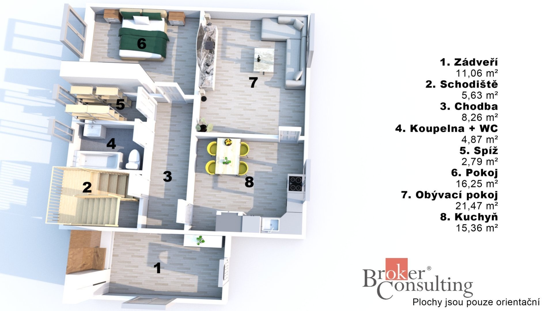 Vizualizace v inzerátu slouží pouze pro inspiraci možného dokončení – dům se prodává ve stavu, v jakém je zachycen na fotografiích.