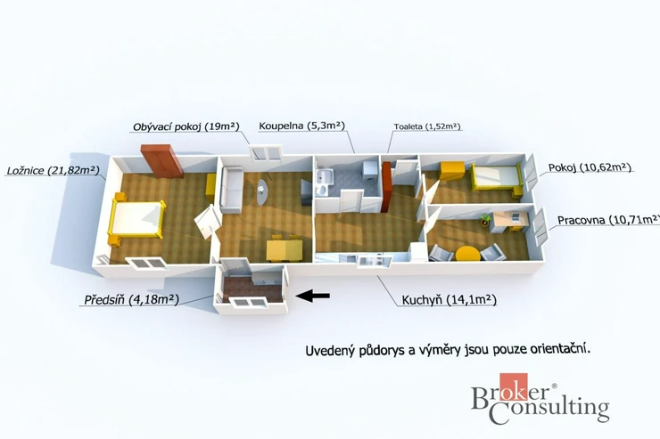 • Dispozice: 4 prostorné pokoje + kuchyně.