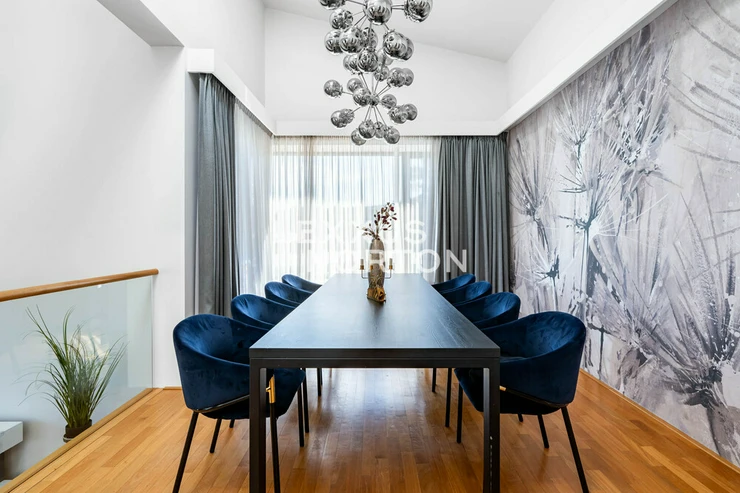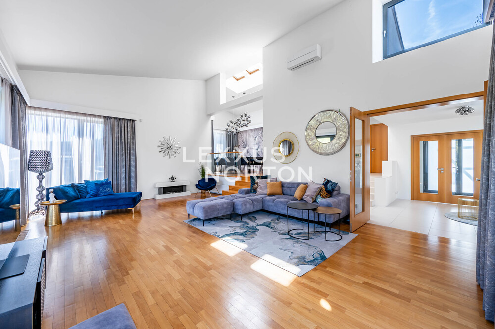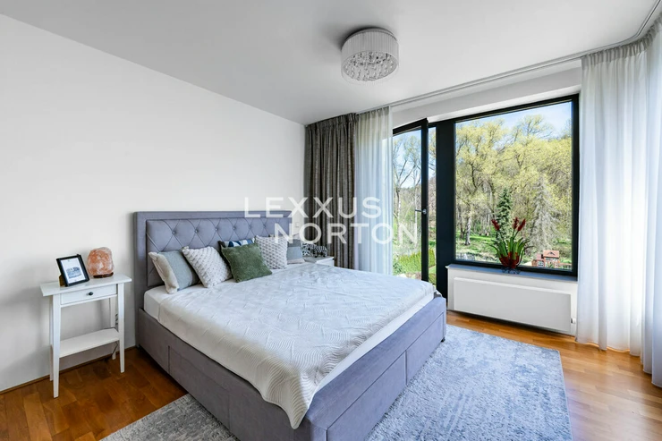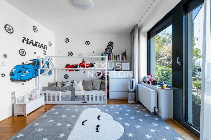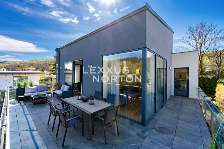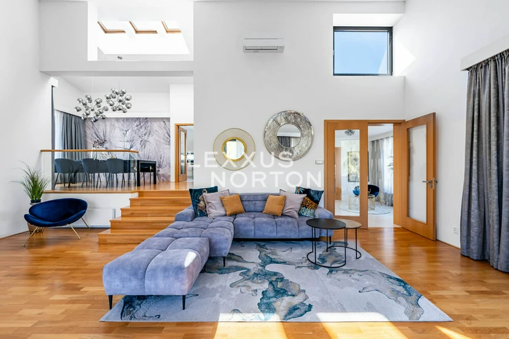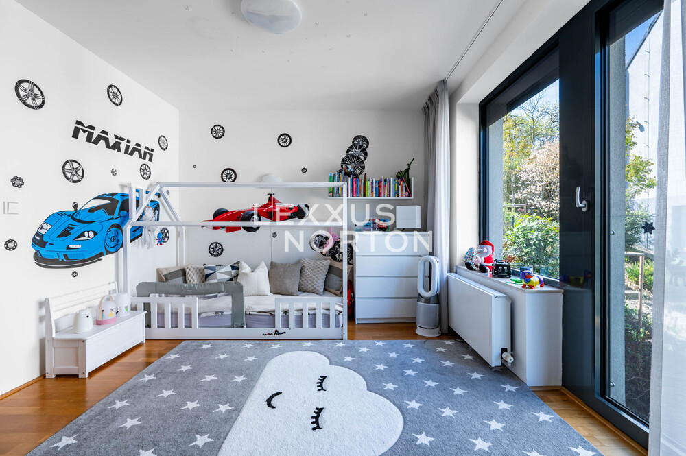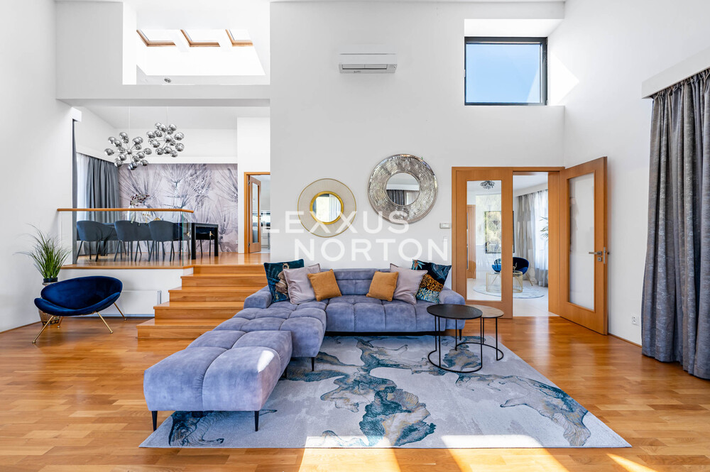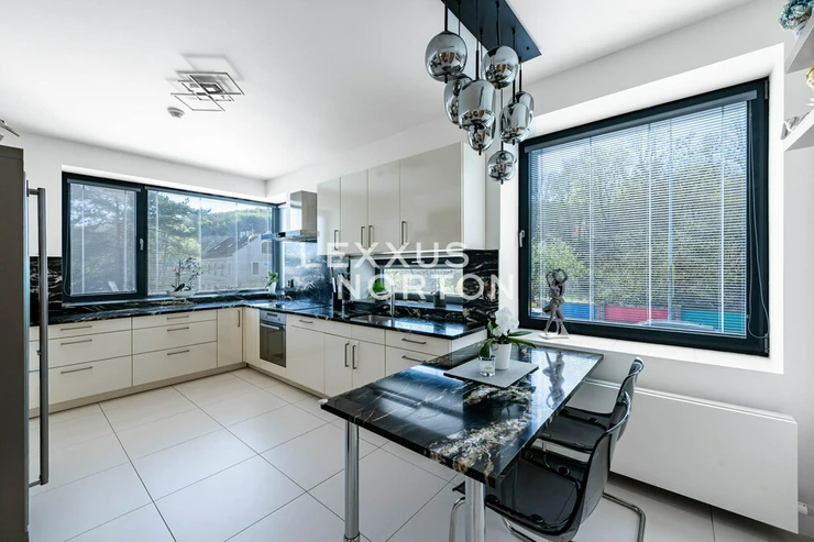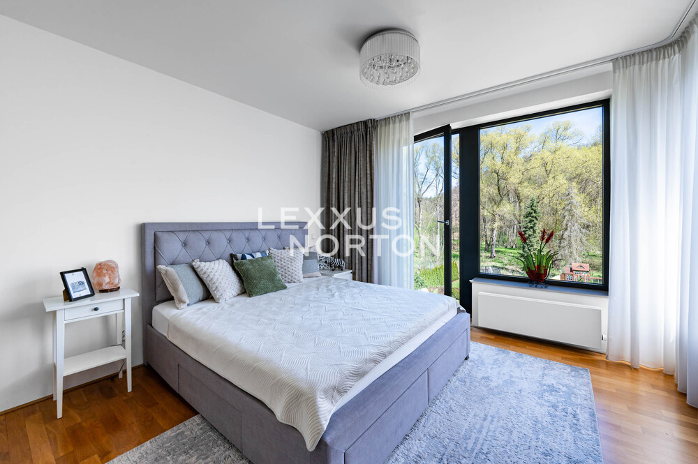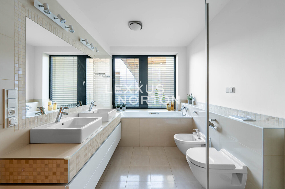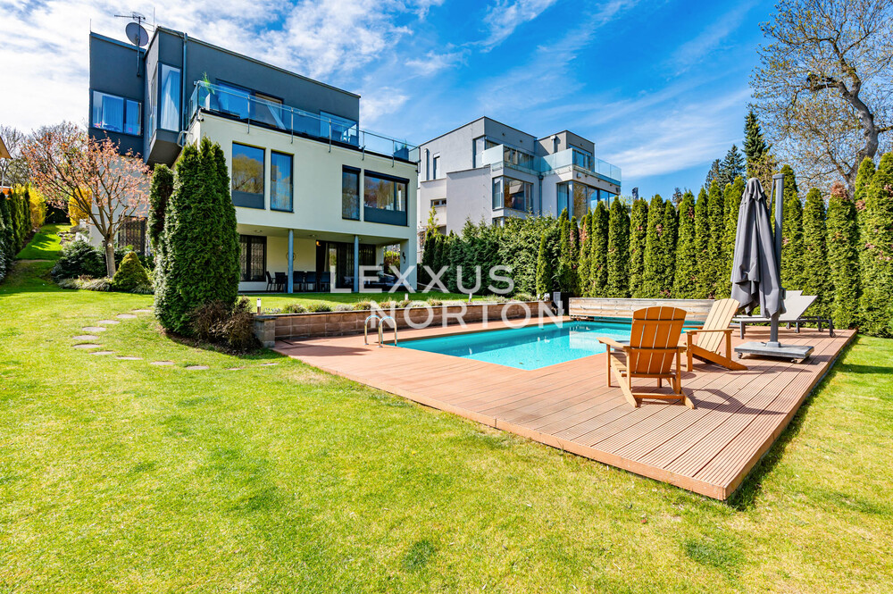 We are offering for sale a spacious 8-bedroom family home located in one of the most prestigious areas of Prague 6—in the picturesque setting of the Šárecké Valley.The layout of the house is designed with an emphasis on ample space and privacy for a large family. On the second floor (main entrance from the street) there is an entryway and a foyer, which flows seamlessly into a spacious living room with access to the terrace. The living area is naturally connected to the dining area, which in turn leads to a separate, generously sized kitchen.On the first floor, which is also accessible directly from the garage, there is a master bedroom with an en-suite bathroom, as well as three children’s rooms connected by shared bathrooms. The lowest floor, at garden level, offers a fully functional living unit consisting of a living room with access to the garden, three separate bedrooms, and a bathroom. This space provides an ideal guest area or the option for independent living.The house features high-quality materials and amenities designed to ensure comfortable living. The interior is dominated by hardwood floors, which lend the space a warm atmosphere, and aluminum double-pane windows, providing excellent thermal insulation. Air conditioning is installed on every floor, ensuring maximum comfort year-round.The house features a separate kitchen with a marble countertop, equipped with Whirlpool appliances. In the living area near the garden, there is also another practical space with a small kitchenette, suitable for guests or as a separate living area. The bathrooms are designed to a high standard and feature a bathtub, shower stalls, a toilet, and a bidet.The exterior features two terraces—one with access to the garden and another on the first floor connected to the living room. The garden is meticulously landscaped, planted with greenery, and equipped with an automatic irrigation system. It also includes a heated pool, which expands the opportunities for relaxation right on the property.A garage is available, as well as an outdoor parking space for an additional vehicle. The Šárecké Valley is one of the most sought-after residential areas in Prague thanks to its combination of nature, tranquility, and excellent access to the city center. The Divoká Šárka Nature Reserve is located in the immediate vicinity, offering a wide range of opportunities for sports and leisure activities—such as walking, cycling, or running.All amenities are accessible within a few minutes’ drive; nearby you’ll find schools such as the prestigious International School of Prague, kindergartens, restaurants, cafés, shops, and medical facilities. There are also excellent connections to the city center and Václav Havel Airport Prague. The location thus offers an ideal balance between peaceful living in nature and quick access to city life.