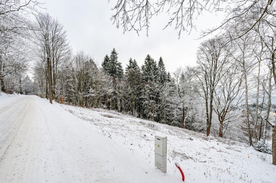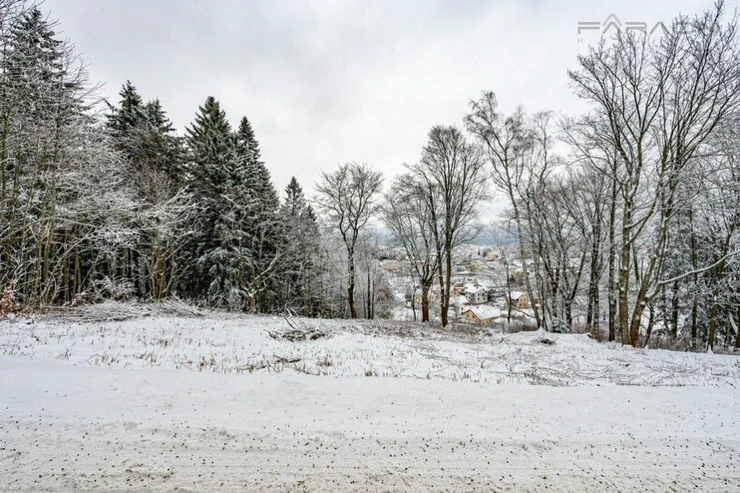 Sale of a beautiful plot of land with an area of 1058.5 m2 with a valid building permit and an implementation project for the construction of a designer timeless villa using natural materials. A beautiful plot in the shape of a parallelogram surrounded by mature, coniferous trees with breathtaking, panoramic views from the Ještěd ridge across the entire Jizera Mountains, the distant Krkonoše Mountains to Černá Studnica in an extremely peaceful natural scenery in Dobrá Voda in Jablonec nad Nisou, precisely in the local part of the village of Vrkoslavice near the forest , in a place where there is almost no development.