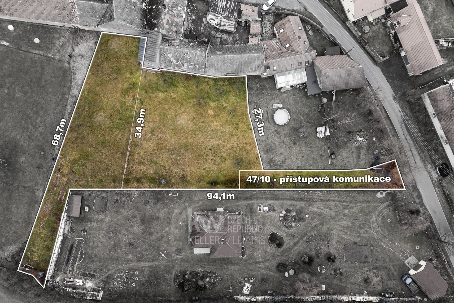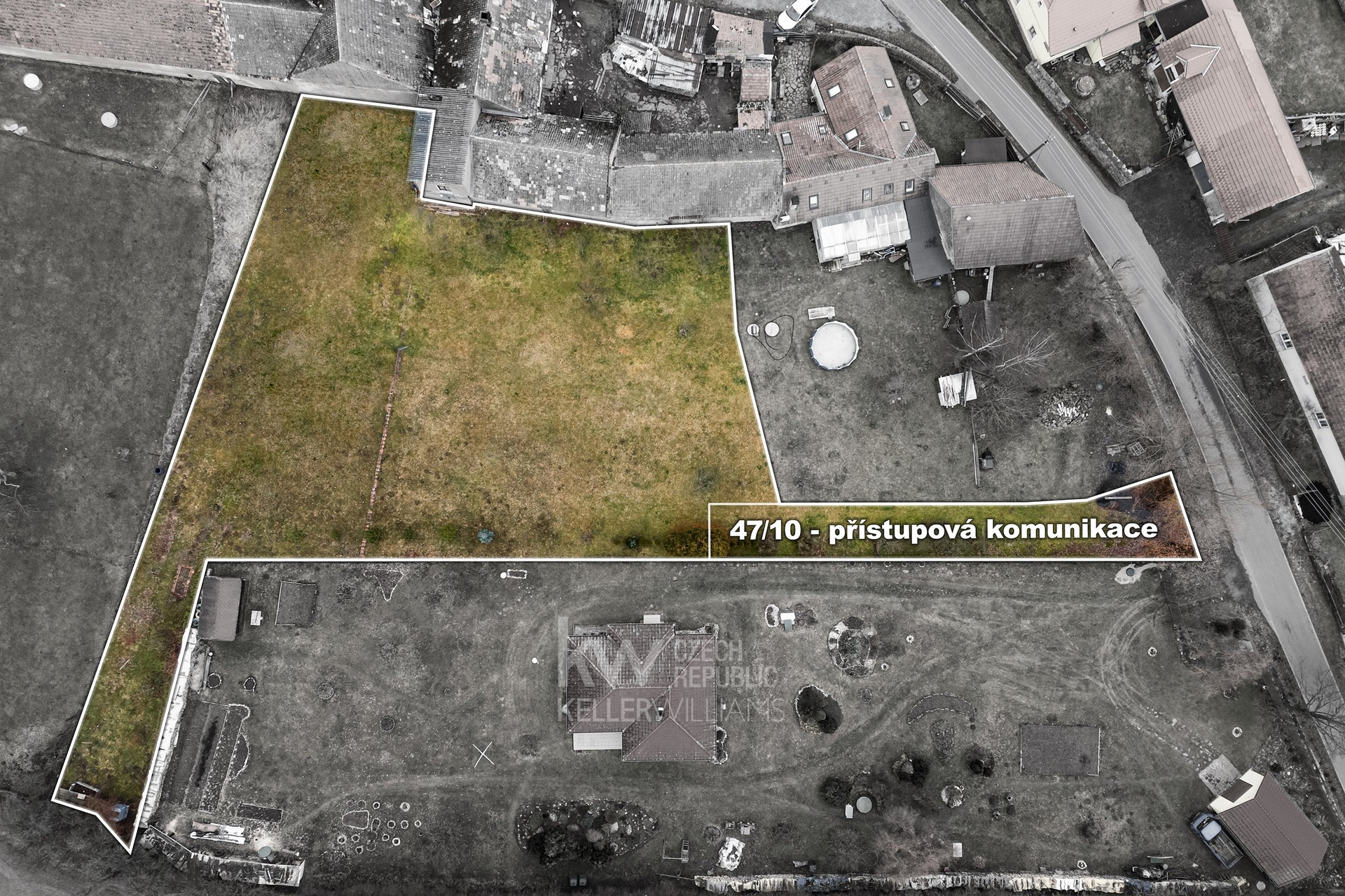 Jedná se o dva pozemky, parcelní čísla 47/3 o velikosti 1230m2 a 47/9 o velikosti 775m2, které se prodávají jako jedna stavební parcela, v územním plánu obce vedená jako pozemek určený pro výstavbu rodinného bydlení. Dále parcela č. 47/10 o velikosti 277m2 – zde se jedná o příjezdovou cestu k pozemku, 1/2 podíl je v ceně pozemku. V zadní části prodávaného pozemku je malý sad s ovocnými stromy.