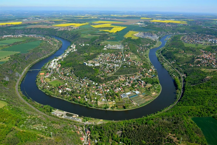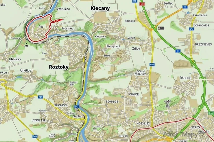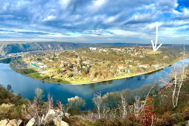 Where? 15 minutes by car from Kobylisy (metro line C) or 23 minutes by train from Masaryk Railway Station (metro line B). Large plot with southern orientation with unobstructed views of the wide surroundings above the meander of the Vltava and directly on the Vltava river.