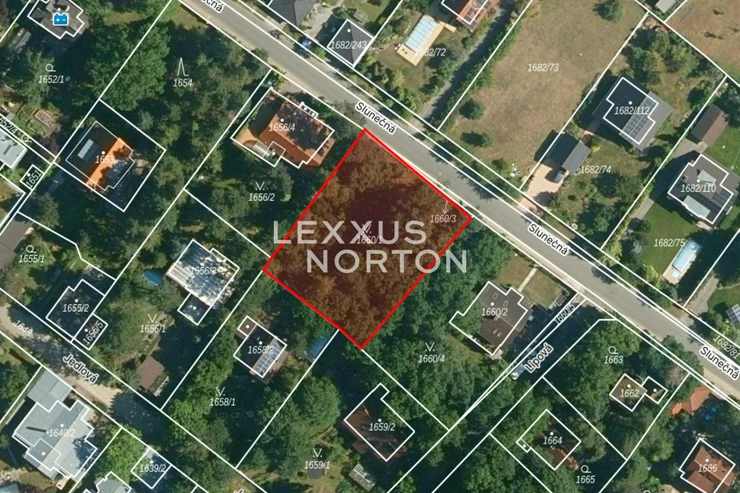 Building plot for a family house in the residential villa district of Cernosice with an area of 1 282 sqm. The plot is flat, rectangular in shape, and features mature greenery. The position of the plot allows for the future house to be oriented with the main part and adjoining outdoor areas facing southwest or southeast. Mature trees on the property provide privacy by shielding the view from neighboring houses, ensuring privacy for outdoor activities. According to the municipal zoning plan, the construction of a family house with a size of up to 256 sqm and two above-ground floors is permitted. The total buildable area of the plot is 30 %, equating to 385 sqm. The plot is fully equipped with utilities: electricity, water, sewage, and gas available at the boundary.It is located on the upper part of Slunecna Street, providing quick pedestrian access to local infrastructure and civic amenities.The center of Prague is accessible within 45 minutes, with the airport and Andel reachable in 30 minutes by car.