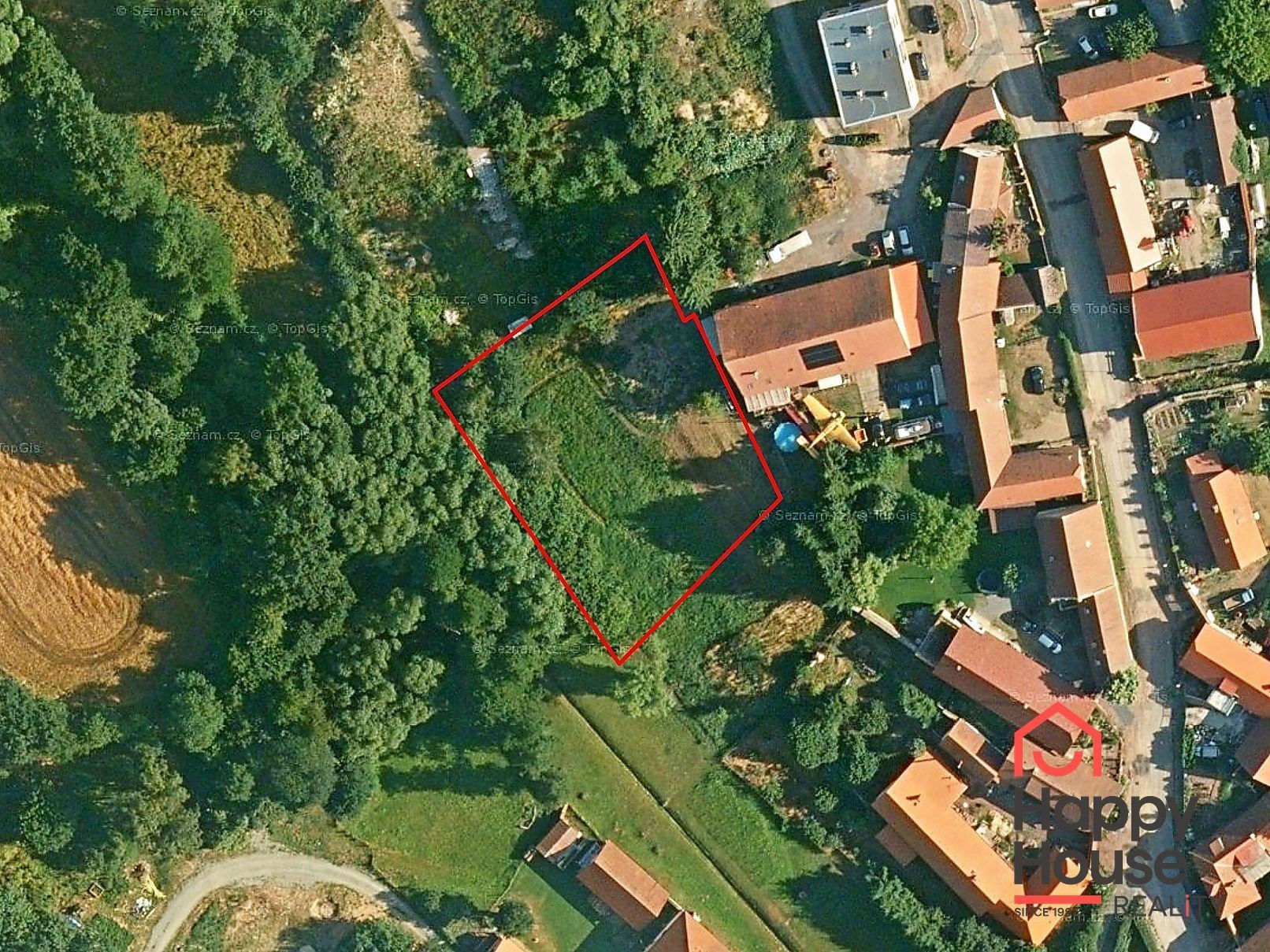 - Land-use plan: designated for the construction of a family house (two above-ground floors, minimum plot size 600 m², meaning the new owner can divide the parcel into two plots and build two family houses).
