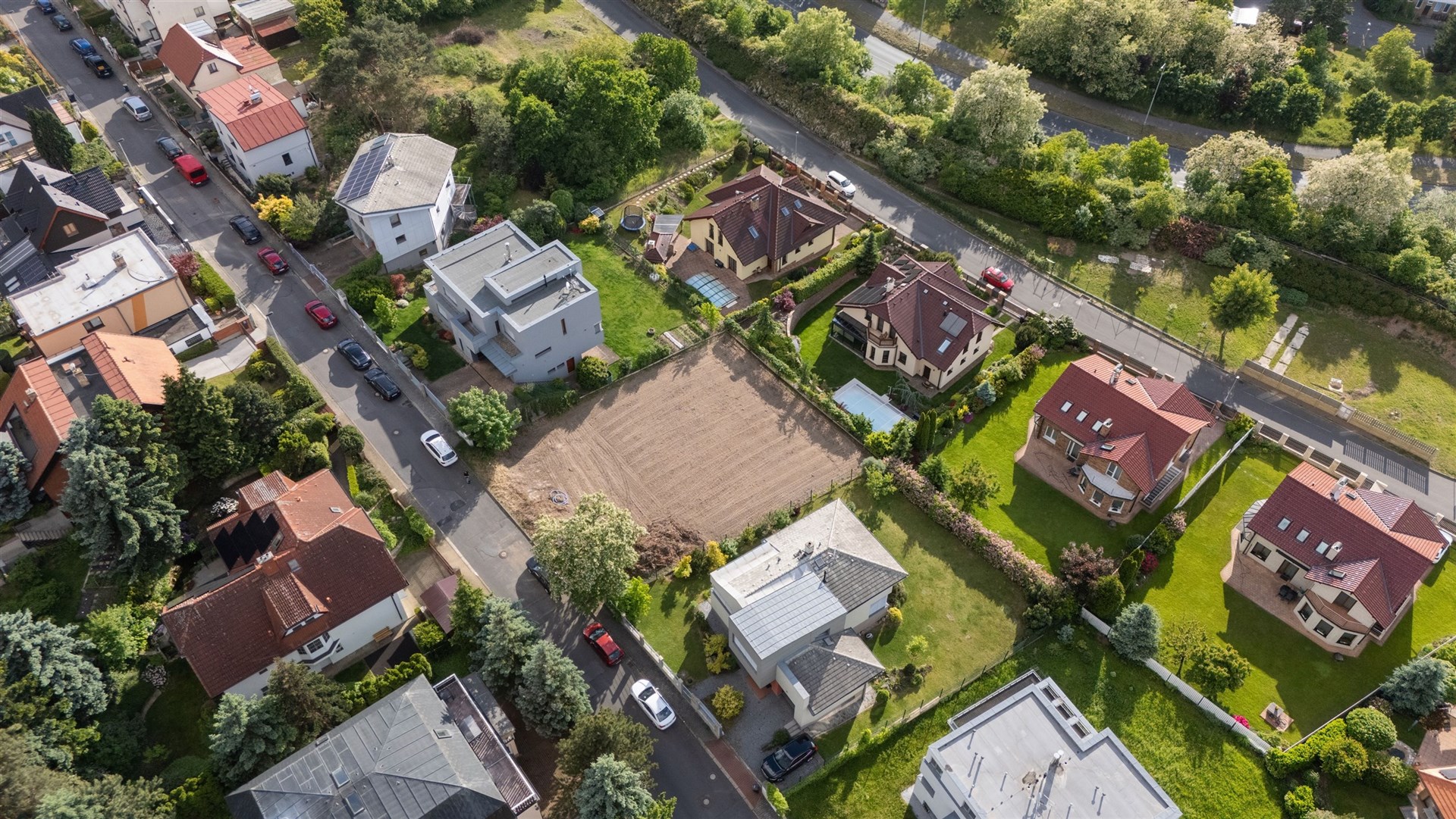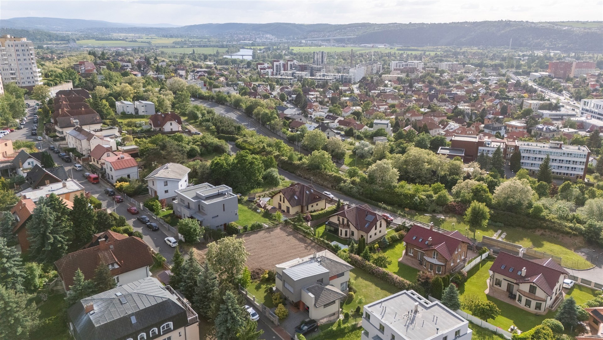 In a quiet street with surrounding family homes, all necessary utilities are available. Local water supply, sewage, electricity, and gas are directly on the border of the plot. The area is equipped with all civic amenities - shops, schools, kindergartens, restaurants, bus, and tram transport.