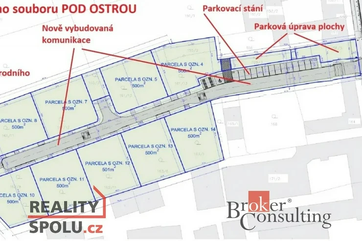 Ve výhradním zastoupení developera nabízíme k prodeji 5 stavebních pozemků v rámci nově vznikající rezidenční zóny Obytný soubor POD OSTROU v atraktivní lokalitě Česká u Brna.