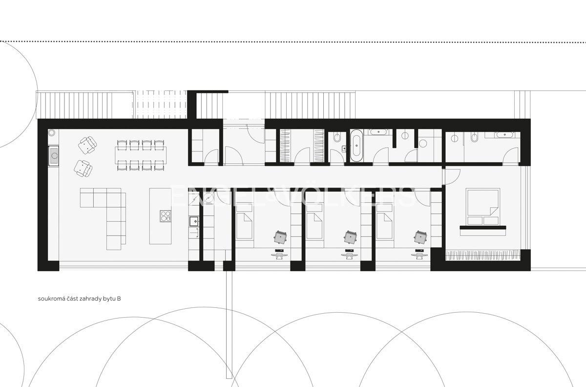 The project envisages a high standard and quality of materials with regard to the size of the apartments and the premium location - a quiet location in Černošice, living near the Berounka River and the railway station (450 m), with transport accessibility to the centre of Prague in 20 minutes.