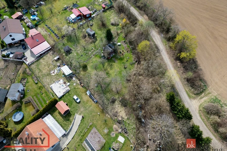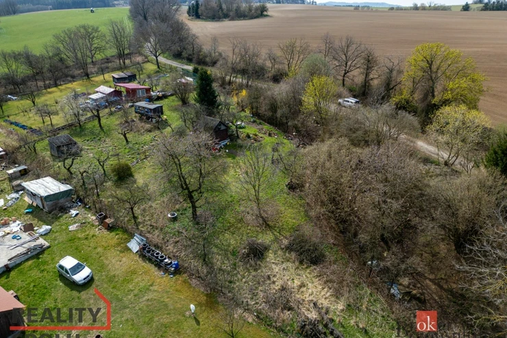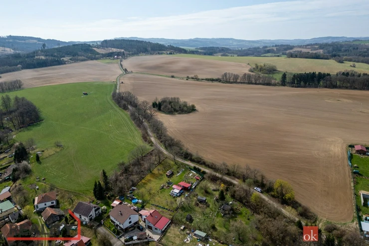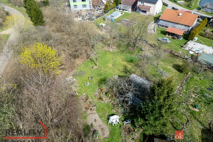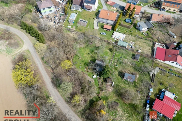 Pozemek o rozloze 1.111 m2, na kterém stojí malá chatka, je umístěn v klidné ulici, s výhledem do okolní přírody. Parcela je územním plánem určena k výstavbě rodinného domu, z pozemku je výjezd na obecní komunikaci, ve které vede obecní vodovod a kanalizace, na které se lze připojit.