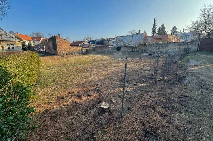 Access from Neprůjezdná street, rectangular shape approx. 30 m x 20 m, suitable for a detached family house or a semi-detached house.