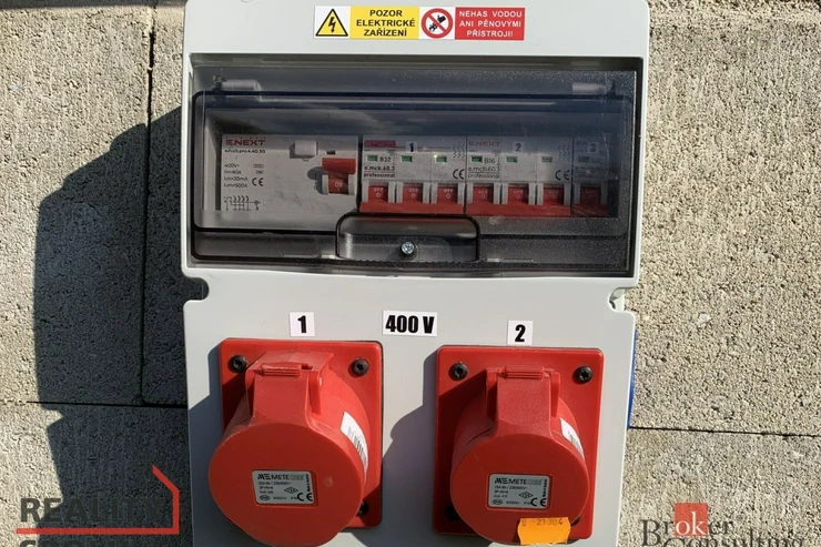 Pozemek je napojen na síť elektrické energie od ČEZ (jističe 3 × 32 A, kategorie C) což umožňuje