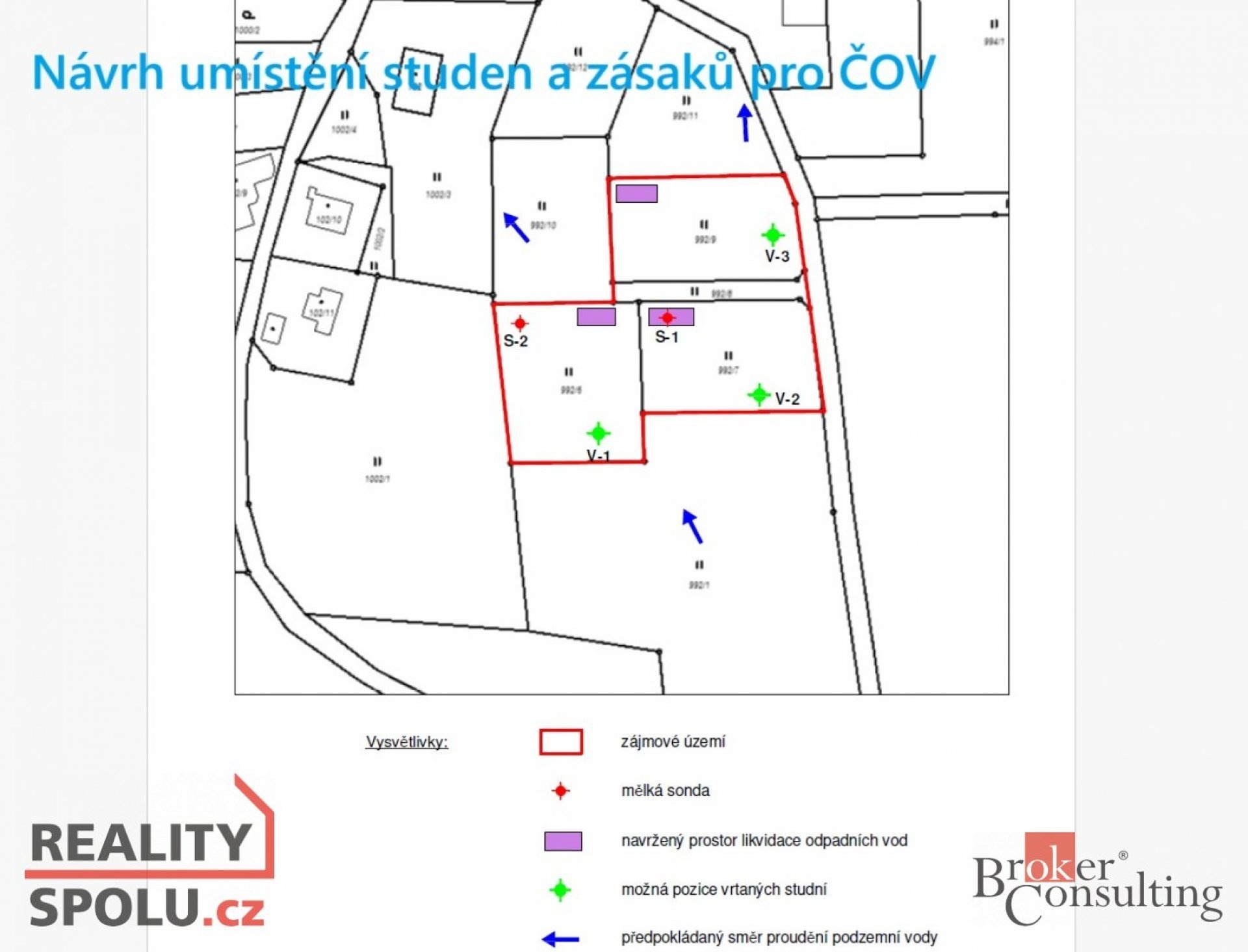 pozemek č. 2 - 1001 m2 a pozemek č. 3 - 1148 m2, ke kterému náleží přístupový pozemek.