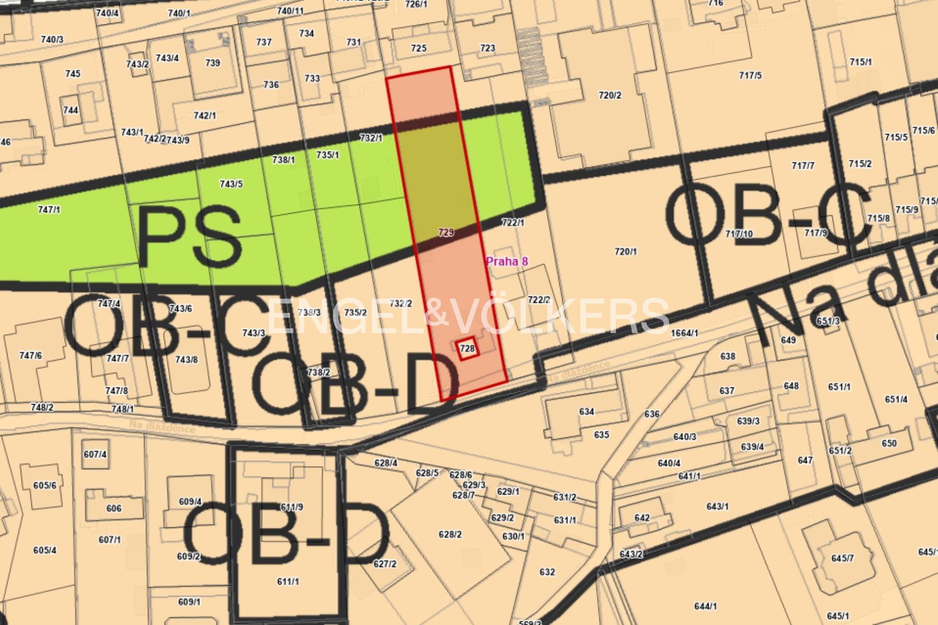 This building plot with a total area of 1,550 m² is located in the cadastral area of Troja and is zoned as OB – purely residential, intended for housing. The location offers a peaceful environment close to nature and excellent access to the centre of Prague.