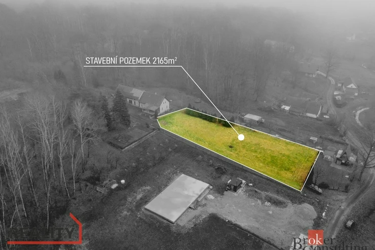 Nabízíme k prodeji pozemek o výměře 2 165 m², který je dle územního plánu obce veden jako stavební. Příjezdová cesta vede až na jeho konec, v cestě je kanalizace, plyn je na hranici pozemku. Část pozemku zasahuje do ochranného pásma lesa, nicméně i tak je možné ve spodní části postavit jeden rodinný dům. Maximální zastavěnost činí 40 % plochy pozemku.