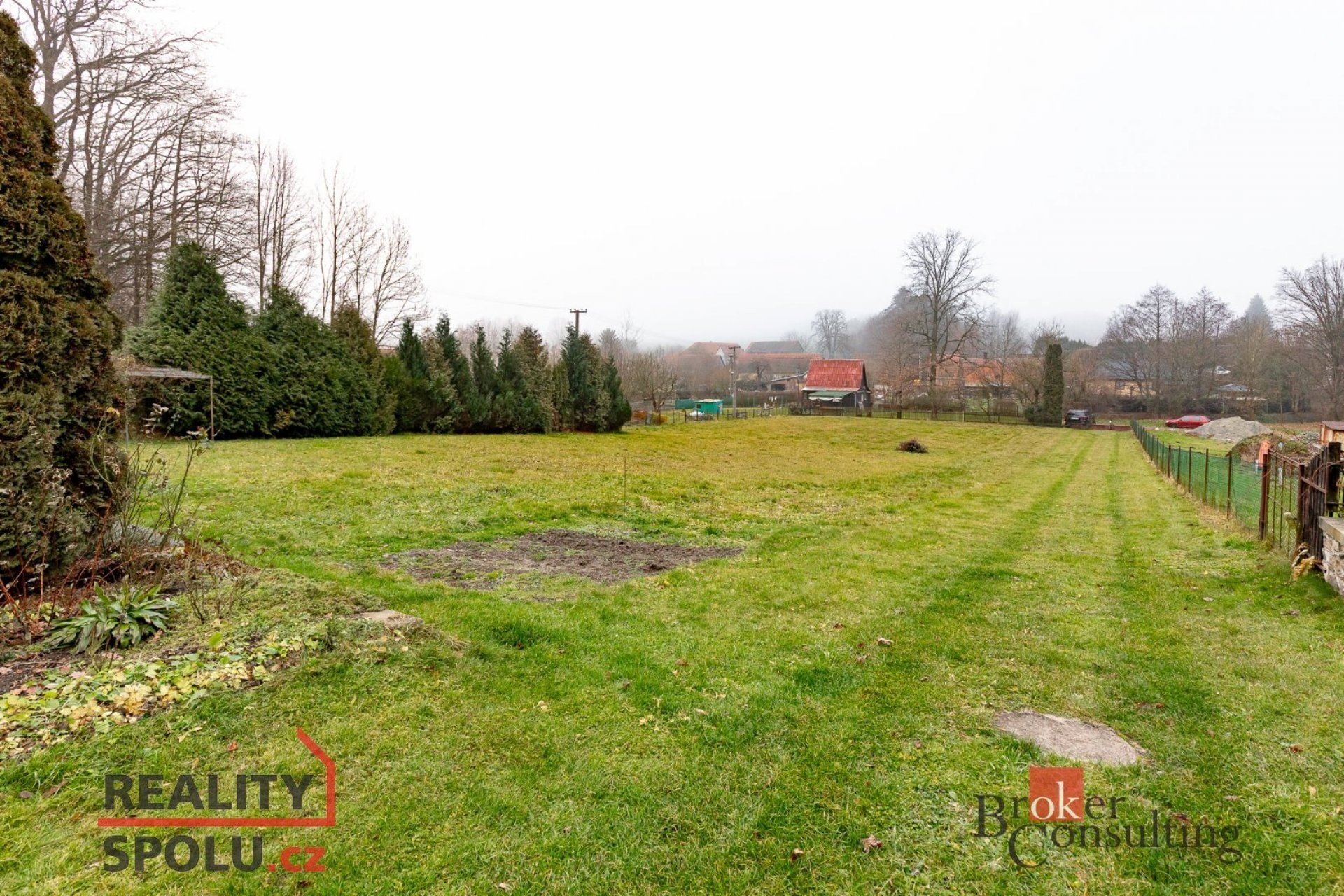 Na prodej se nabízí také rodinný dům se zahradou, který je umístěn nad tímto stavebním pozemkem.