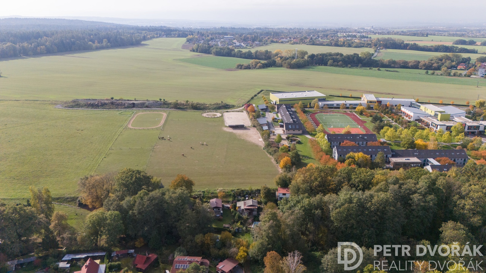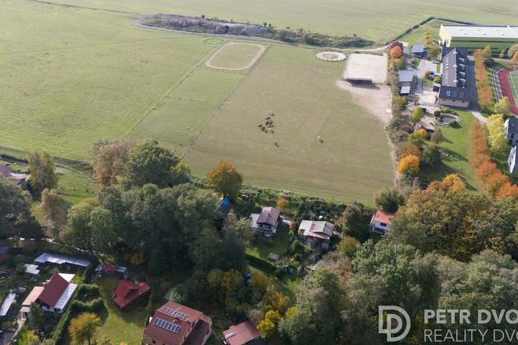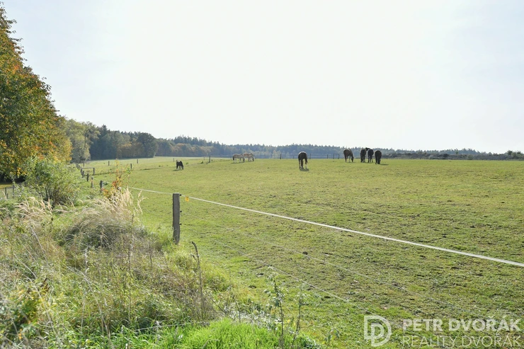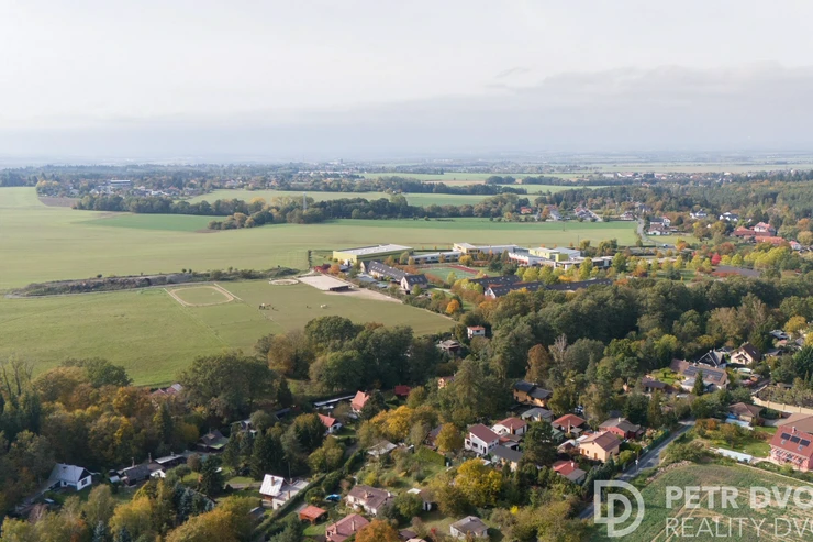The plot directly borders the open green areas of the prestigious Open Gate school, where horses roam freely – creating a peaceful, unique atmosphere. This location offers the perfect balance of nature and convenience, just 30 minutes by car to central Prague or 20 minutes by train from nearby Kolovraty. Kolovraty is only a 10-minute drive from Babice.