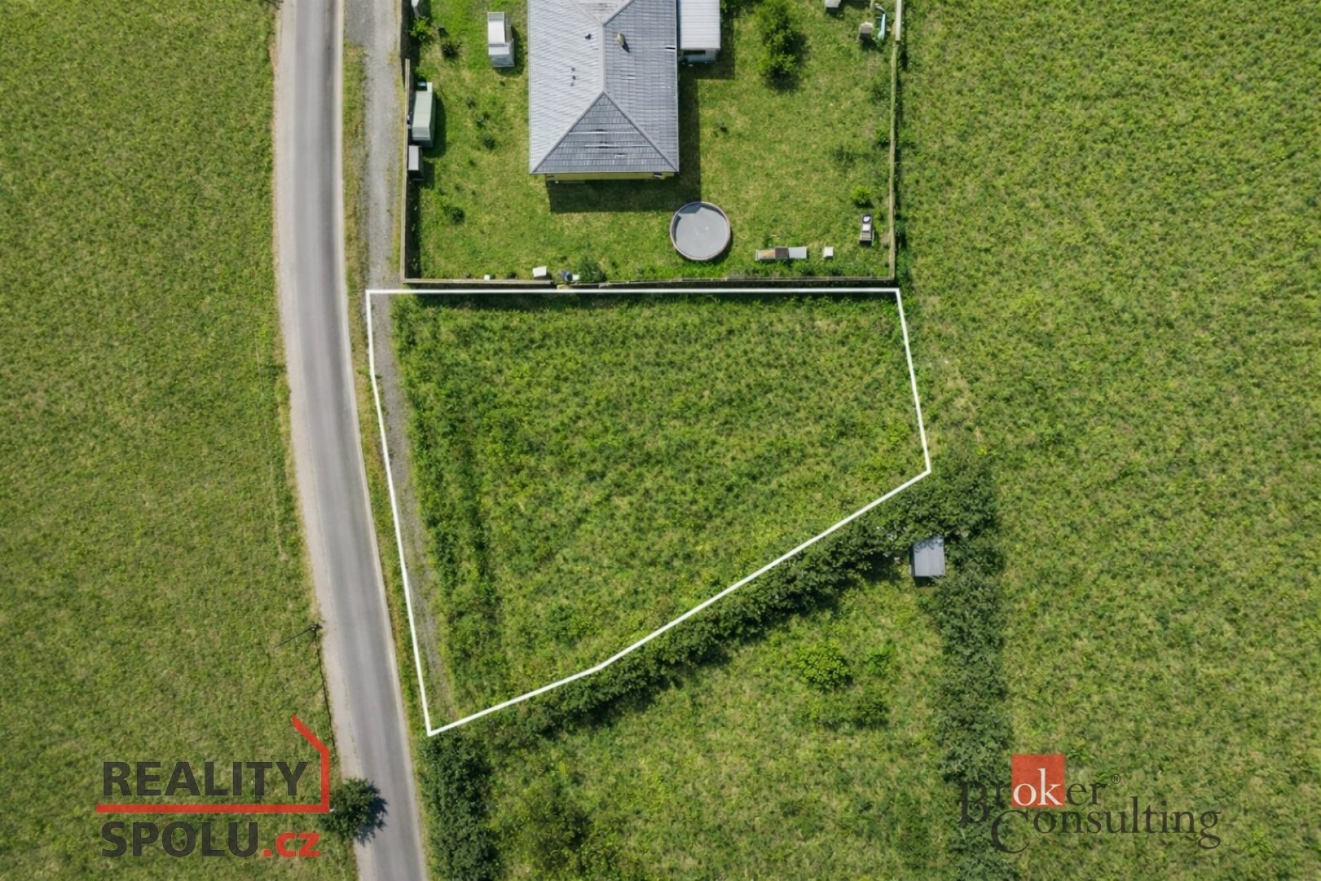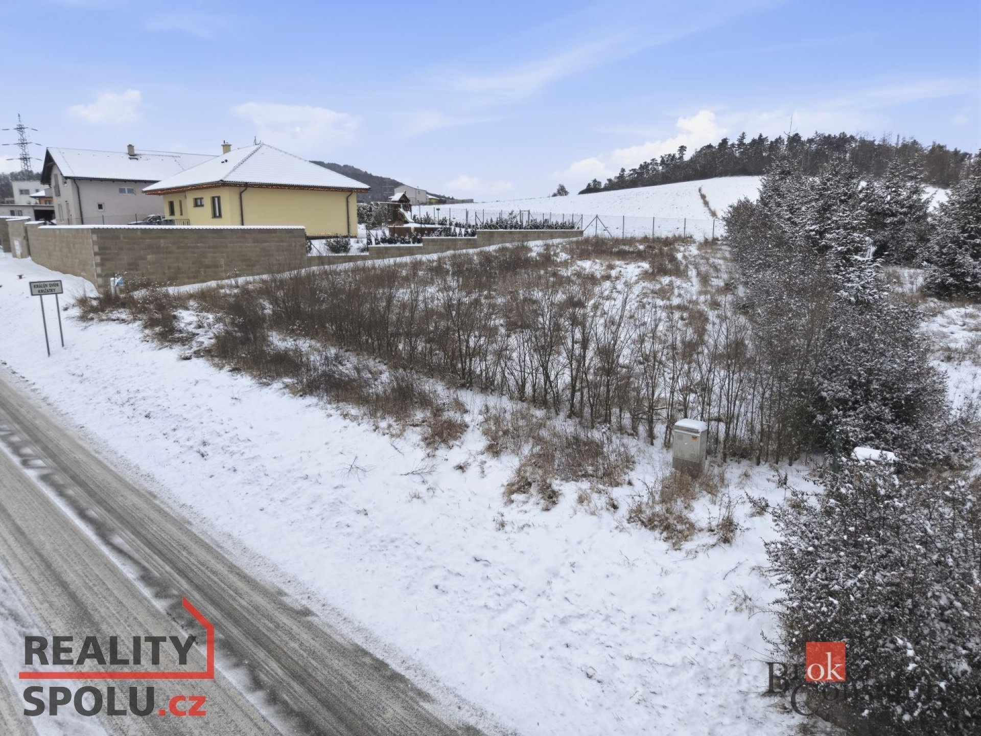 Pozemek je mírně svažitý a poskytuje atraktivní výhled do krajiny. Významnou výhodou je kombinace klidné lokalitě uprostřed přírody a výborné dostupnosti — Praha cca 30 km, kompletní občanská vybavenost v Králově Dvoře do 5 minut jízdy.