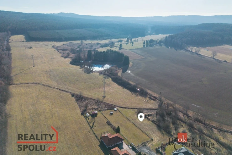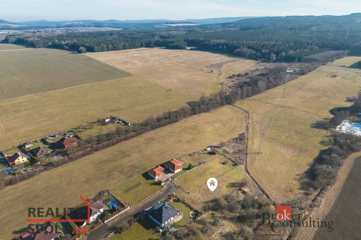 Parcela o výměře 1544m² se skládá ze zastavitelné plochy 1352m², nezastavitelné plochy 63m² , 129m² koryta vodního toku a spoluvlastnického podílu 1/3 na příjezdové komunikaci - není zahrnuto v ploše pozemku.