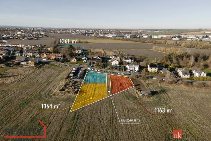 Dostatečná výměra i tvar pozemku umožňují realizovat moderní rodinný dům, garáž, zahradu i venkovní relaxační zónu.