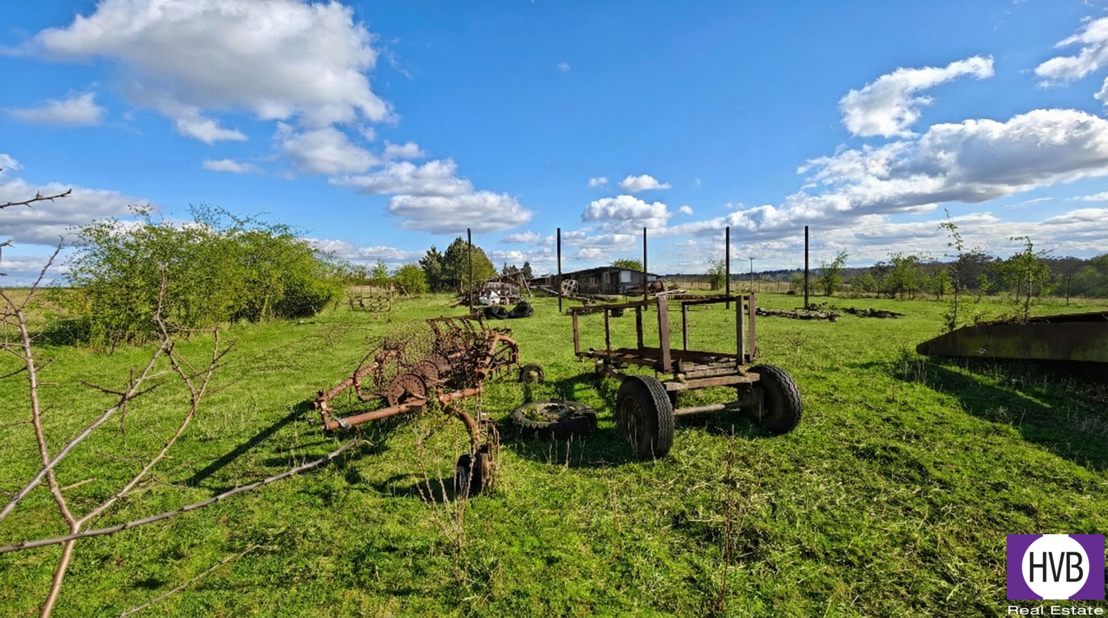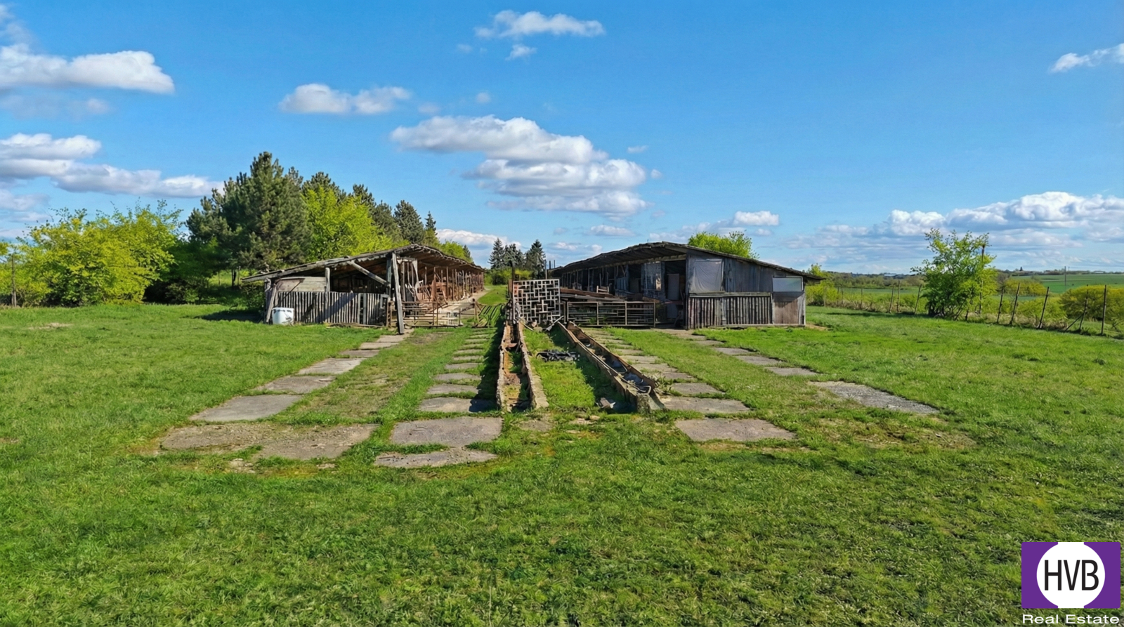 The dominant feature of the site is an existing single-storey wooden agricultural building with a built-up area exceeding 1,500 m², which can be removed at low cost and replaced with a building according to the future owner’s business plan. The surrounding land is recorded in the cadastre mostly as garden; the main part of the property is fenced. The land-use plan classifies the areas as a production and storage zone with an emphasis on agriculture. Regulations also allow construction of buildings for business activities including services and non-disruptive production. The complex may include buildings for maintenance, site protection, and staff apartments to support operations. The maximum built-up area for freestanding buildings is limited to 2,300 m². At the same time, attention must be paid to the landscape character and the planting of buffer greenery along the edges of the plots.
