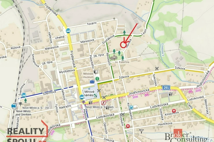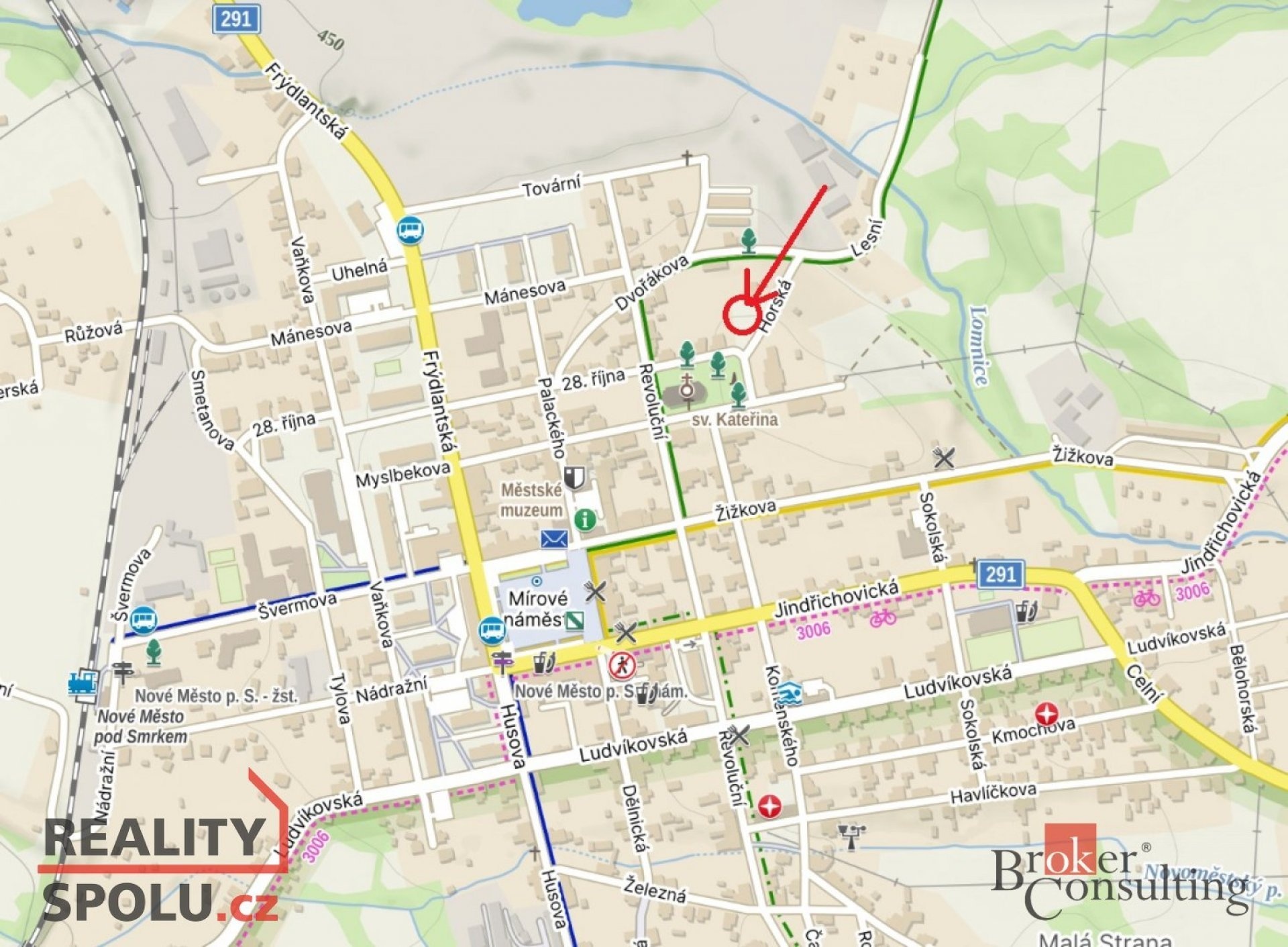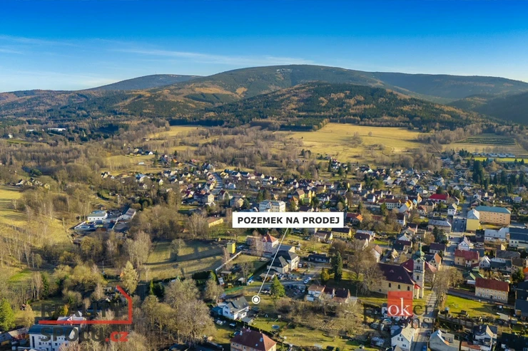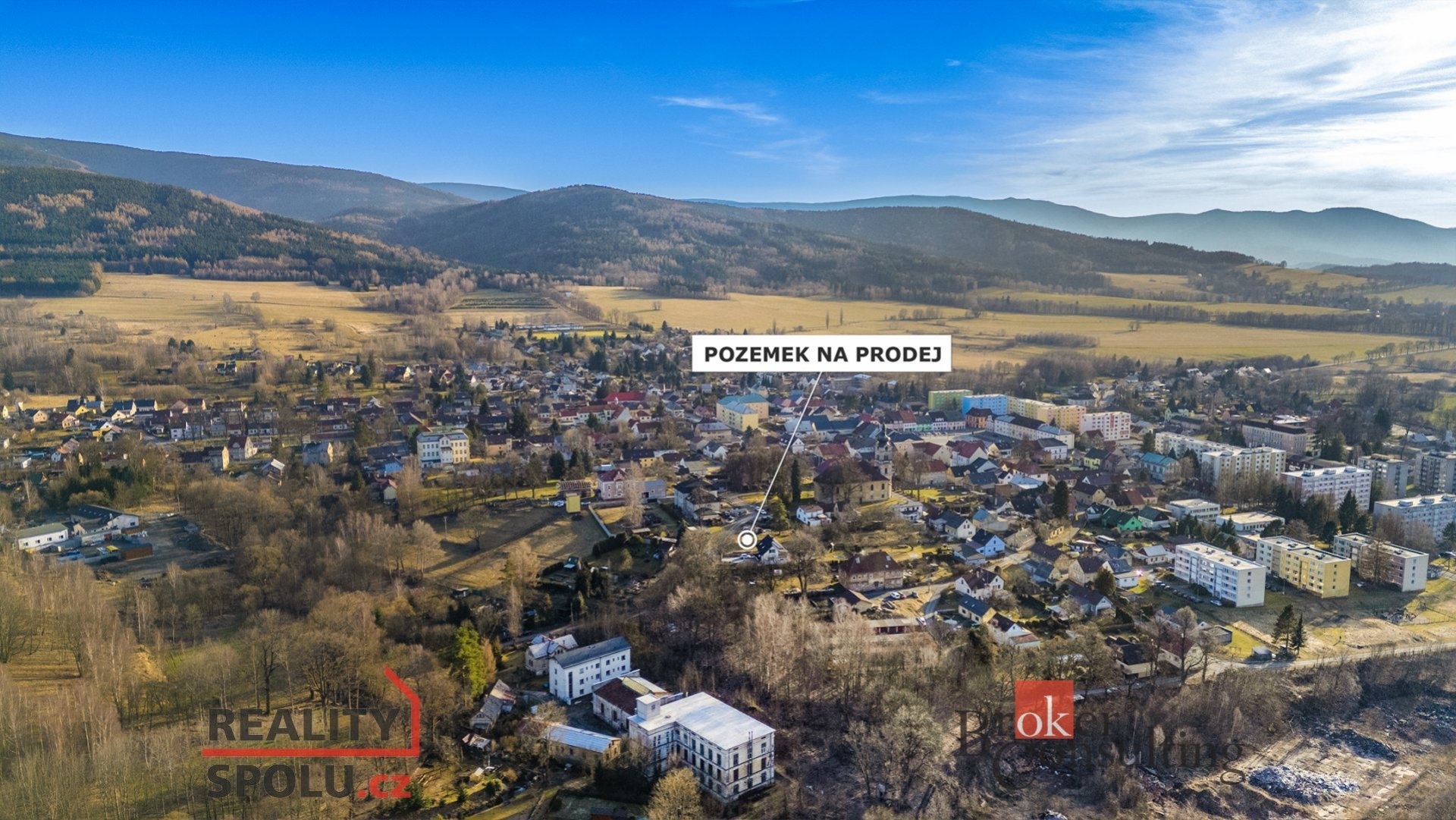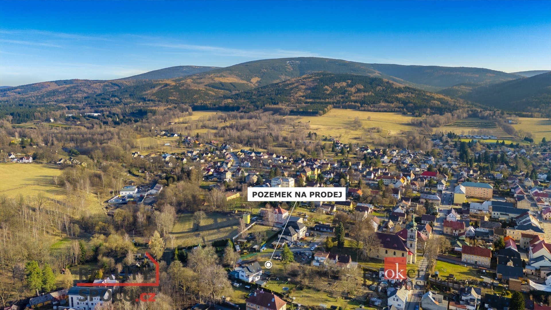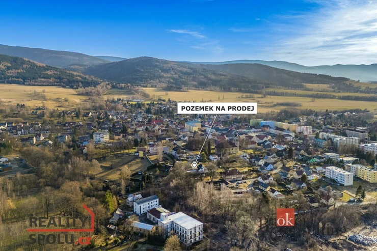 Prodej oploceného pozemku o výměře 573 m2 na okraji zástavby v Novém Městě pod Smrkem, umožňujícího dle územního plánu výstavbu rodinného domu (nachází se v plochách SM - smíšené městské).