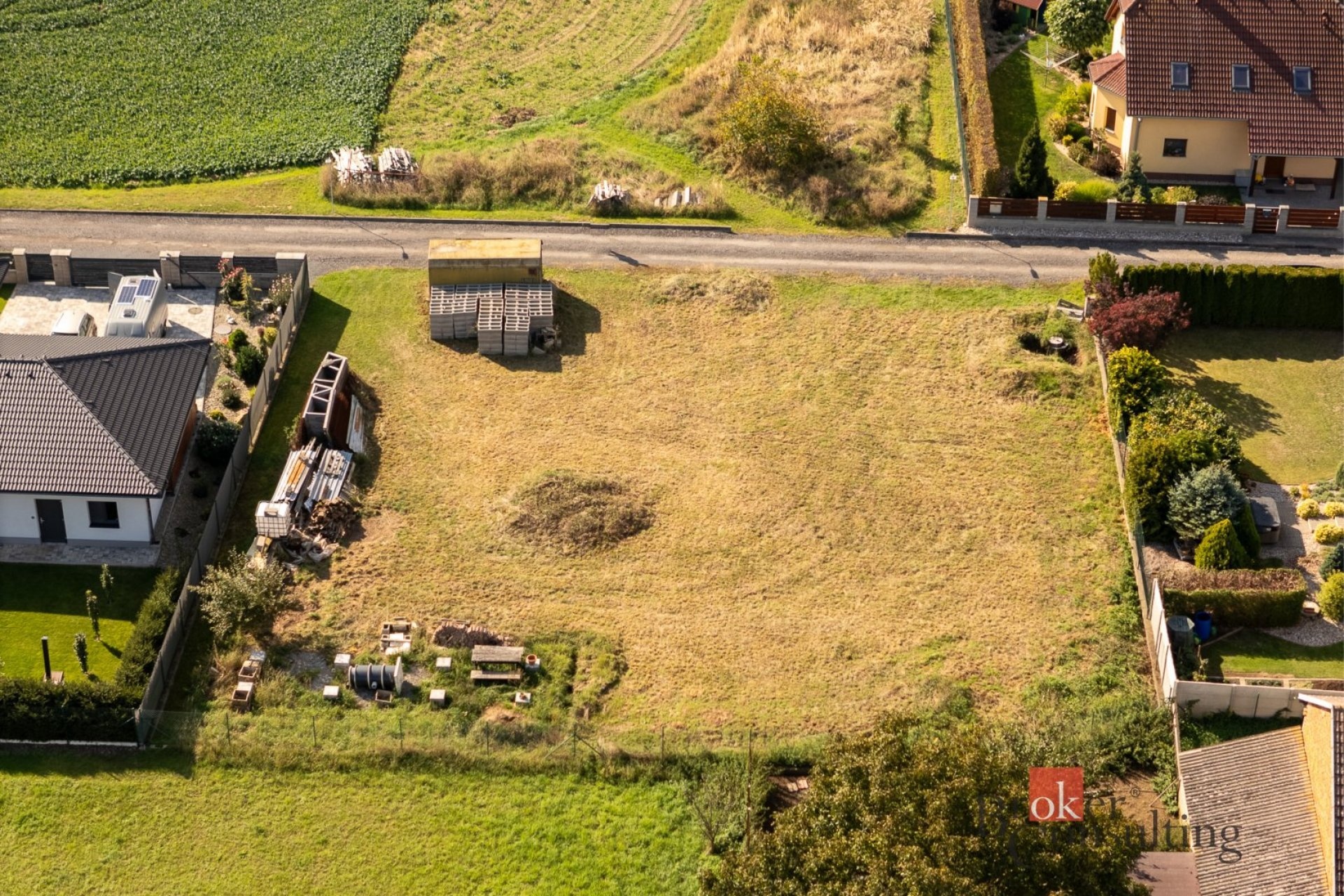 Většina stavebních pozemků je jen holá plocha. Tenhle je jiný. Součástí prodeje je stavební buňka, kterou využijete jako zázemí od prvního dne stavby, stavební materiál pro základovou desku, který Vám ušetří čas i peníze hned na startu, a spoluvlastnický podíl na příjezdové asfaltové komunikaci zajišťující celoroční bezproblémový přístup k pozemku.