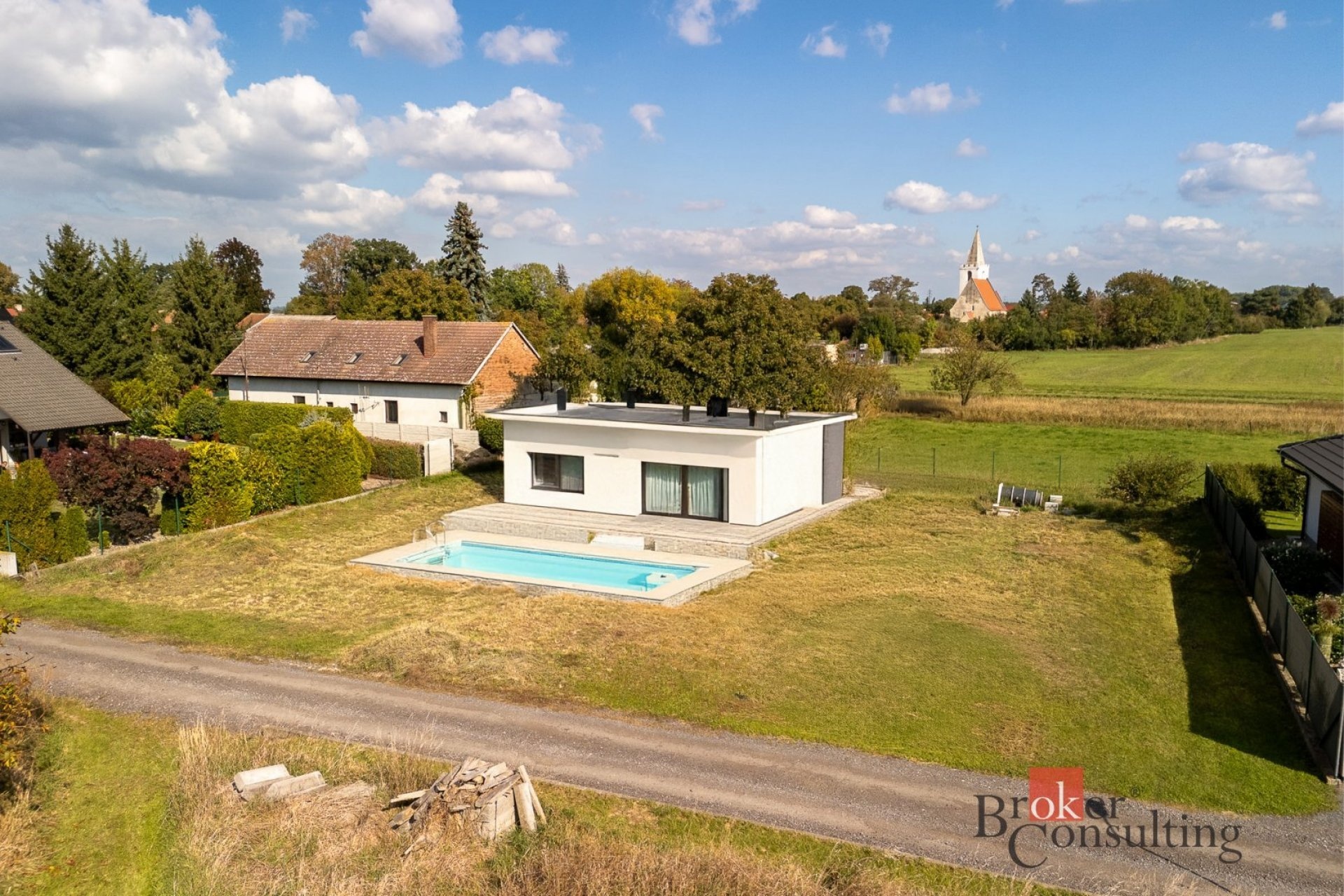 Výměra pozemku je 1 091 m², terén je rovinatý a pozemek je určen pro výstavbu rodinného domu. Veškeré inženýrské sítě jsou přivedeny na hranici pozemku. Přístup je zajištěn po asfaltové komunikaci, jejíž spoluvlastnický podíl je součástí prodeje. Pardubice i Hradec Králové jsou vzdáleny shodně 14 km.