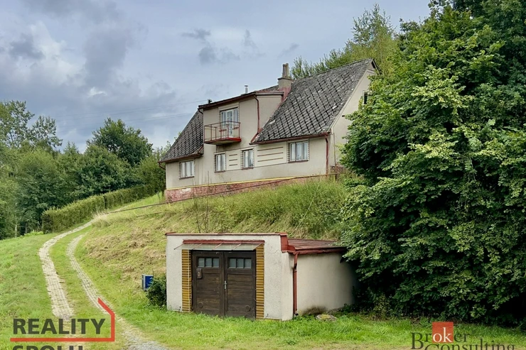 K domu patří zděná, zamykatelná garáž na vlastním pozemku. Součástí prodeje jsou pozemky s celkovou výměrou 7.924 m² (zastavěná plocha a nádvoří, jiná plocha, trvalý travní porost, ostatní plocha).