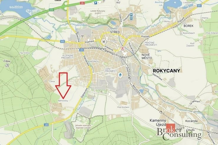 Prodej stavebního pozemku 677 m² – Rokycany, část Němčičky