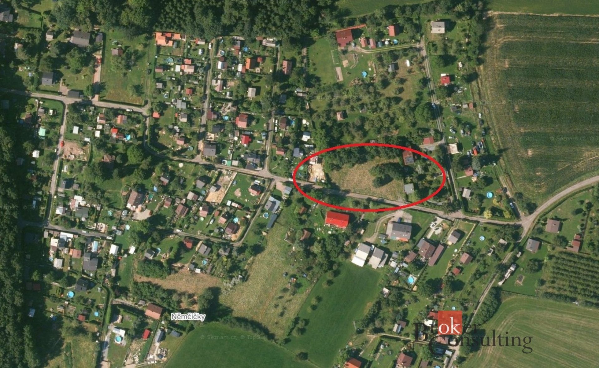 V případě zájmu je možnost koupit i sousední parcelu s výměrou 750 m2 a tím si pozemek zvětšit.