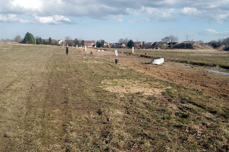 Gas, electricity, water, and both storm and sewage systems are already connected at the property boundary. An access road is currently under construction. Completion of the engineering networks is planned for September 2026.