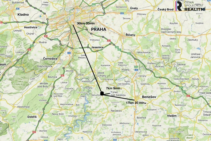cities, approximately 14 km to Benešov and approximately 30 km to Prague.