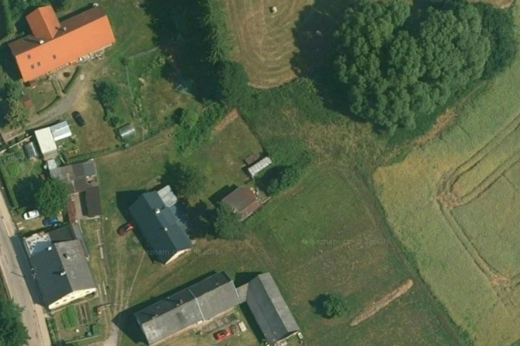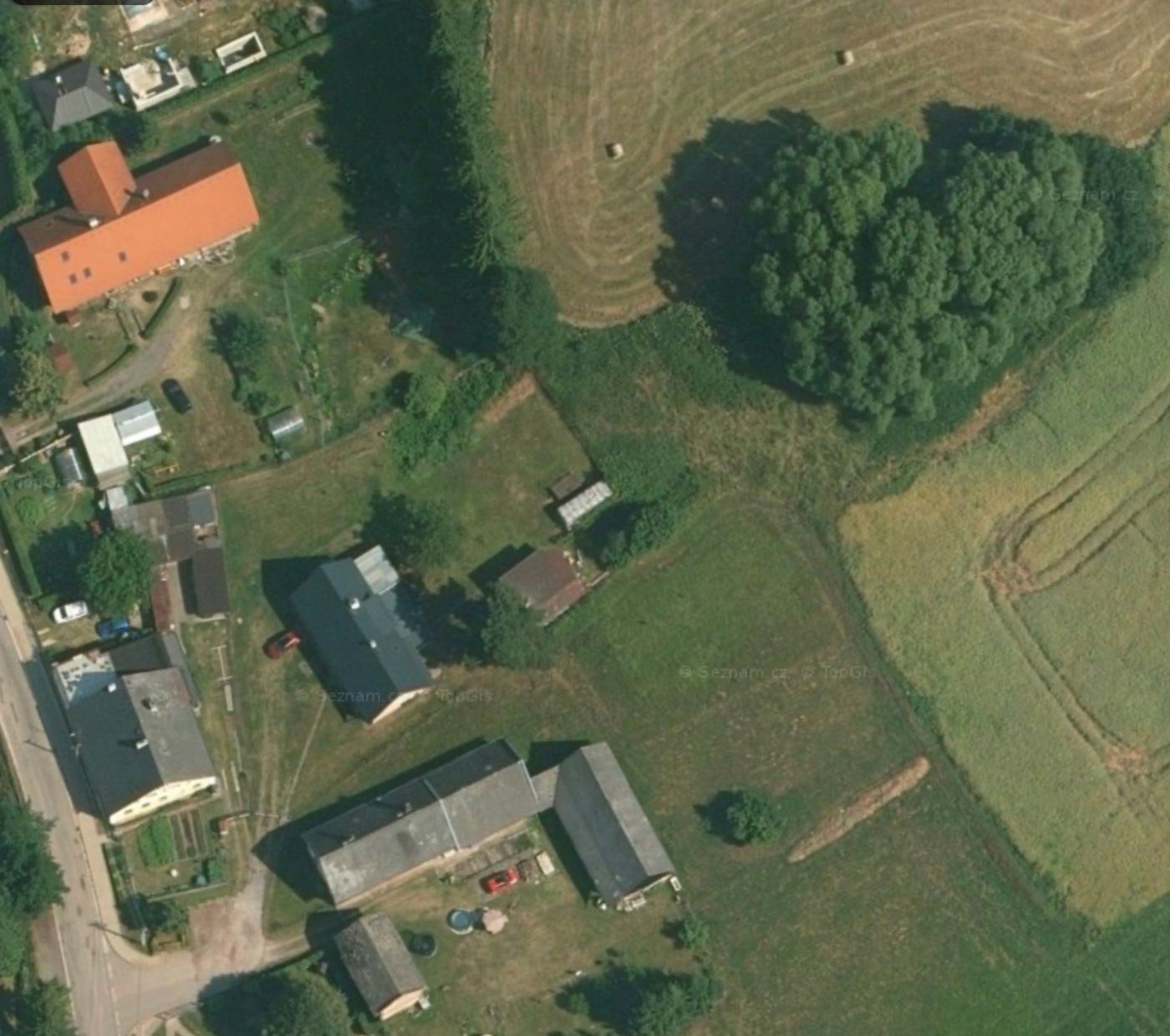 The plot (garden and permanent grass cover) is situated directly in the built-up area of the municipality of Vlčice, in a quiet street with surrounding family houses, close to the municipal office, school, and kindergarten. In the vicinity, you will find all civic amenities, a cultural house with a restaurant, a football and multipurpose playground, and a pond called Dalibor near the village.