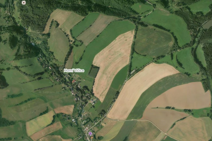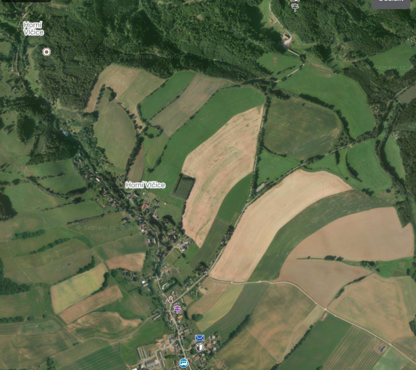 Beyond the built-up area of Vlčice, we also offer for sale a large agricultural land (arable land) with an area of 42,248 m2. This agricultural plot is located directly by the road connecting Vlčice with Hrádeček, at the entrance to the natural park in Hrádeček, 1 km from the plot in Vlčice.