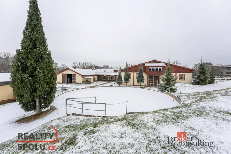 Zázemí tvoří 42 boxů, klubovna s výhledem do haly, sociální a provozní zázemí a ubytování v 2. NP. Jezdecké plochy zahrnují krytou halu, dvě venkovní jízdárny, kolotoč, kratší cvalovou dráhu a výběhy, s možností využívat i sousední pozemek. Součástí areálu je také kapacitní parkoviště a potůček, který areálem protéká.